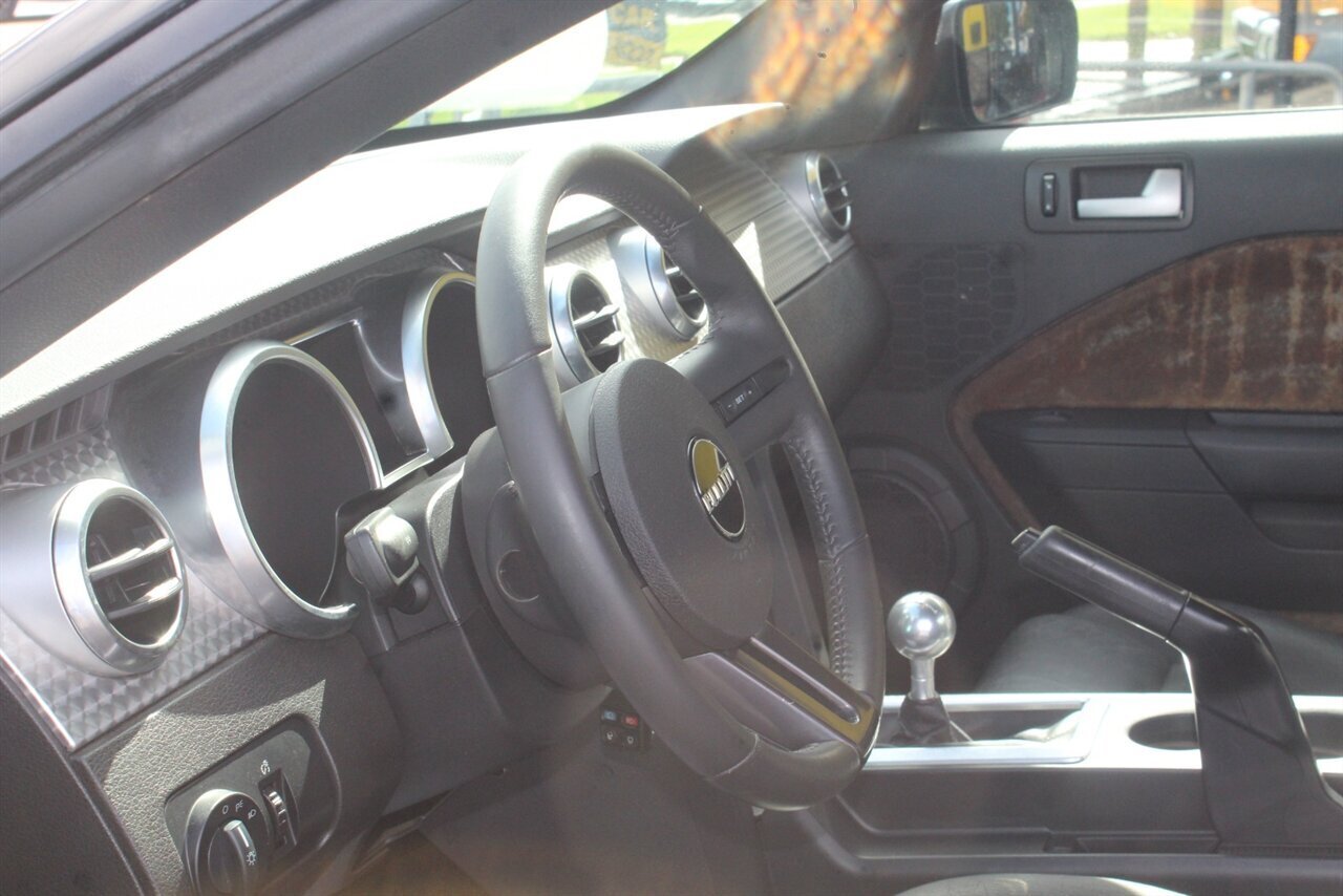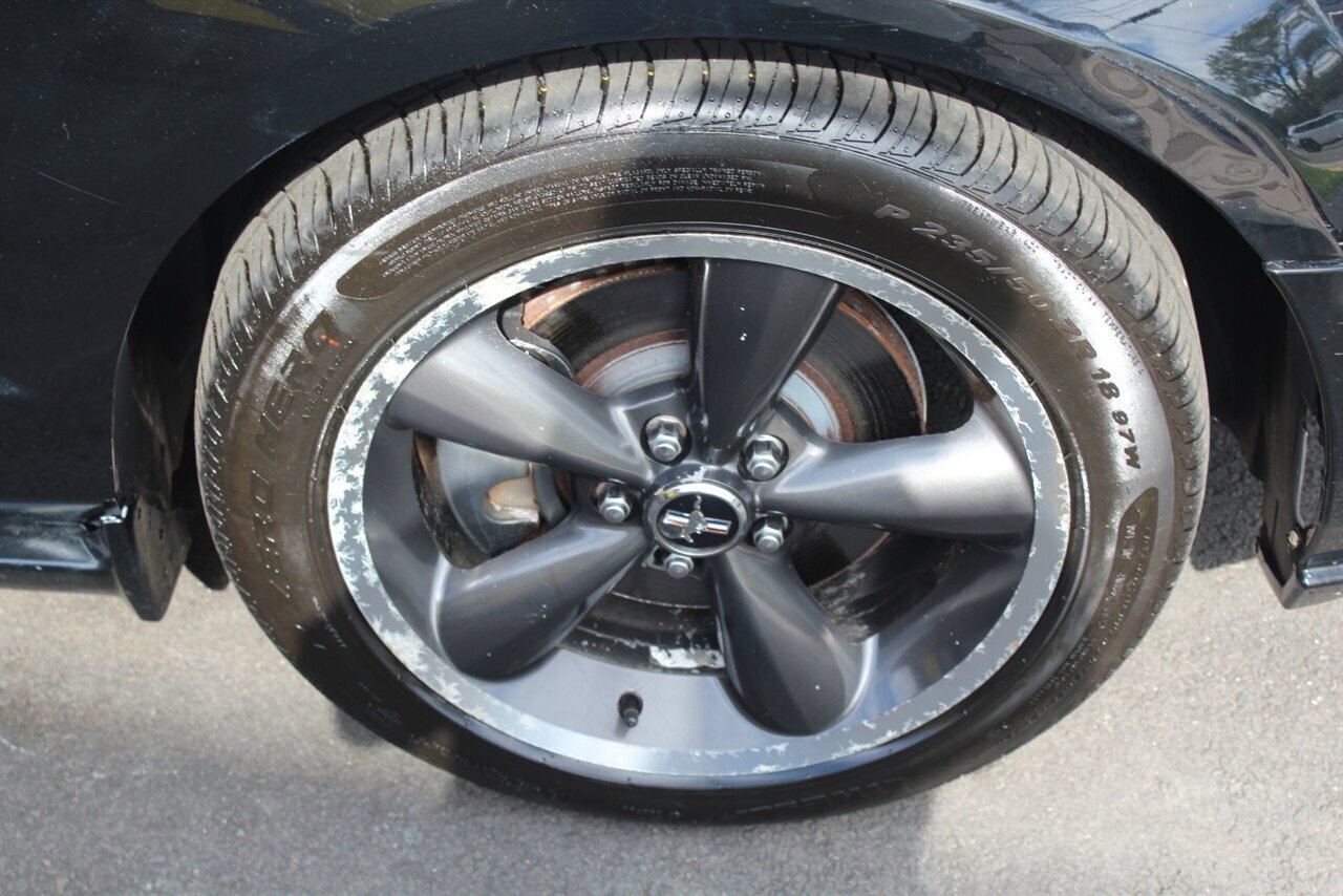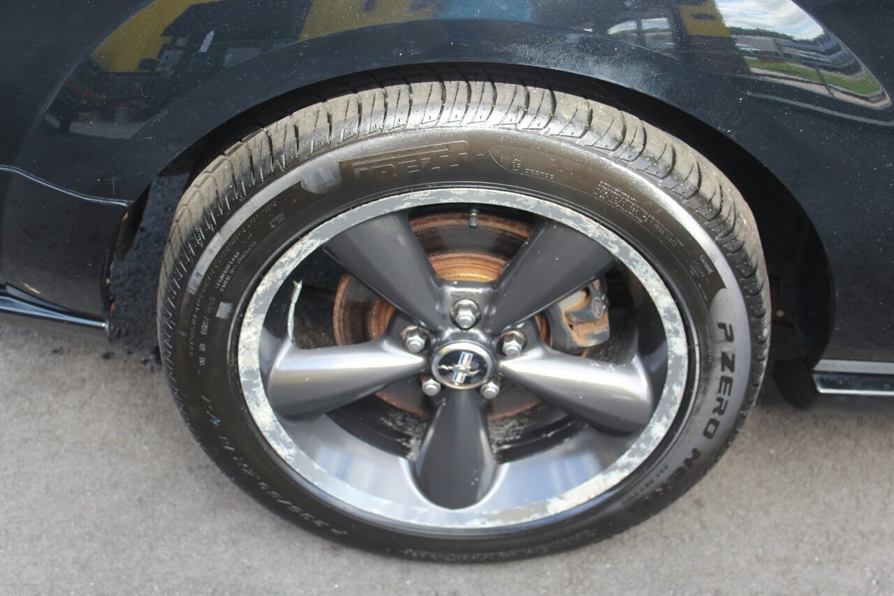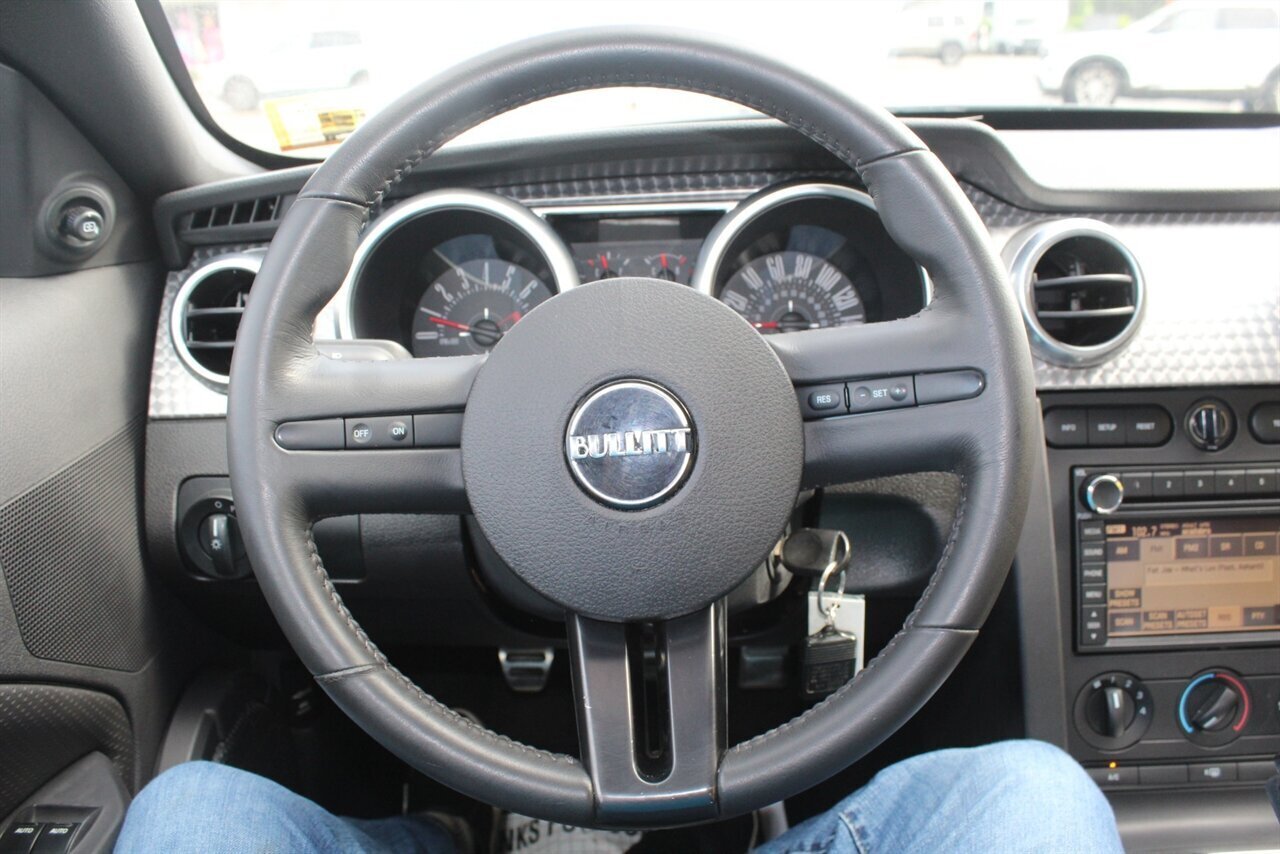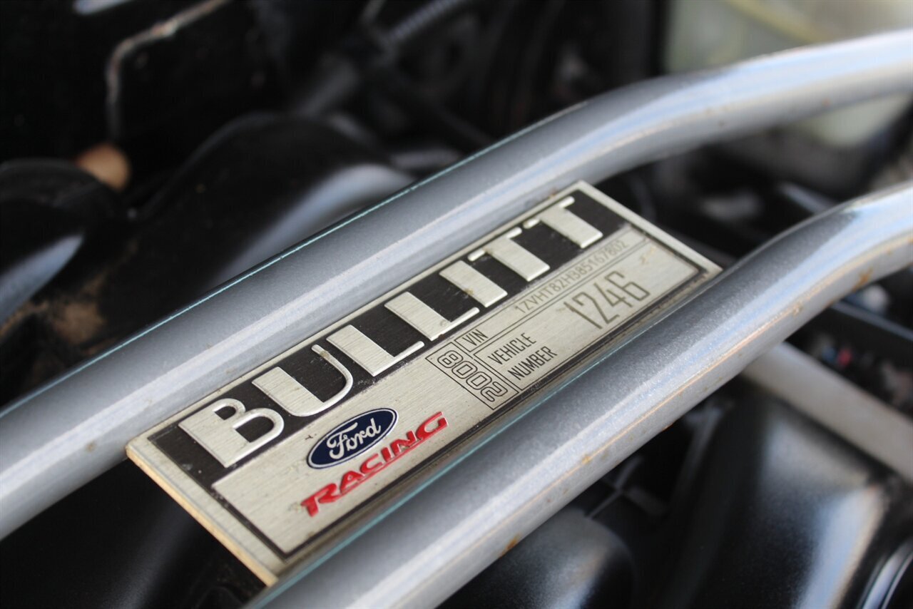 - Bullitt PackageIncludes specially designed components for Bullitt including cold air induction system and strut tower brace. Also includes high performance calibrations, sport tuned suspension, 3.73 : 1 limited rear slip axle, performance friction carbon metallic front brake pads, modified tuned "H" exhaust pipe, dark grey brake calipers, 18" Euro-Flanged Bullitt wheels with charcoal satin finish, 3.5 inch packed exhaust tips, upper grille without fog lamps or Pony badge, Bullitt emblem on faux fuel cap, tire inflation kit provided in lieu of the space saver mini spare, black interior with upgraded steering wheel, sport leather trimmed seat appearance, aluminum accented ball shifter, sill plates and pedal covers, unique IP finish( gunmetal engine turn pattern) and spoiler delete. Available in Highland Green or Black exterior paint colors.
