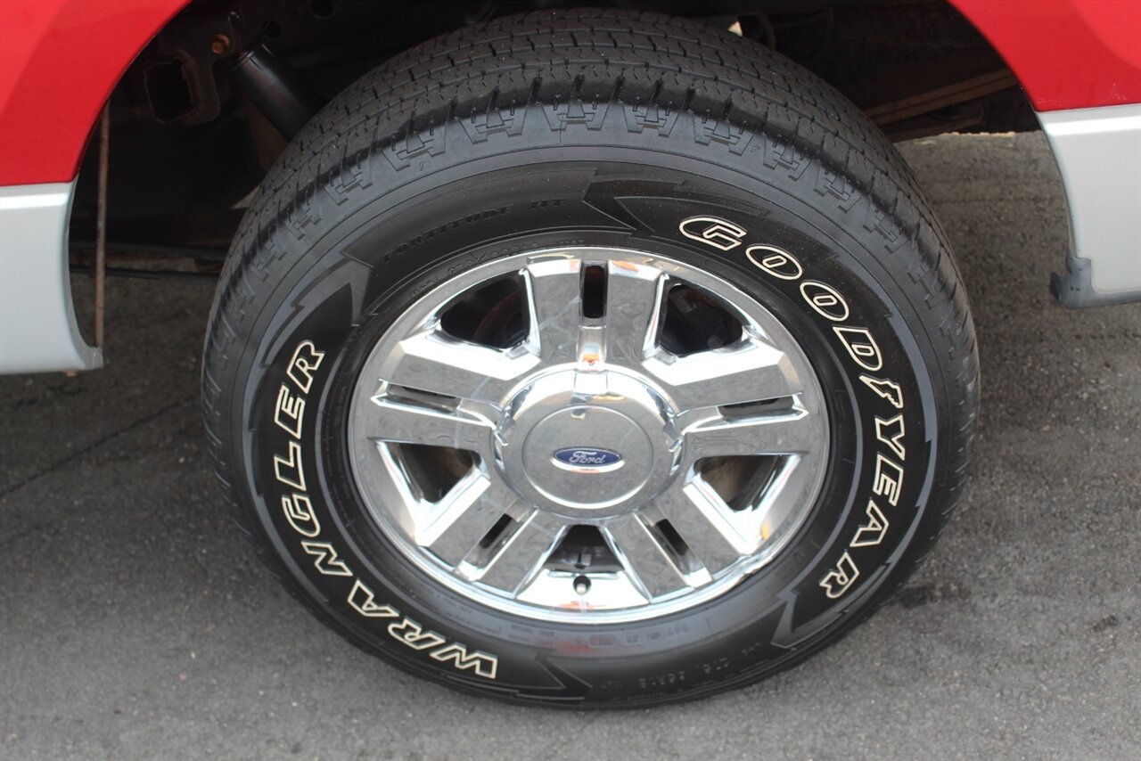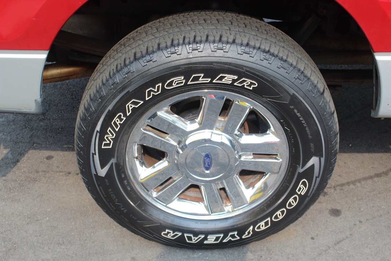 - XLT Chrome PackageIncludes chrome billet-style grille, chrome front tow hooks, 18 in. chrome clad aluminum wheels, P275/65R18 OWL all-terrain tires, chrome door handles with black bezels, 5 in. chrome tubular running boards, chrome exhaust tip, and color-coordinated leather-wrapped steering wheel.