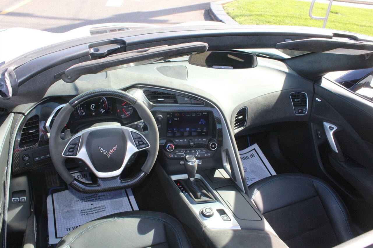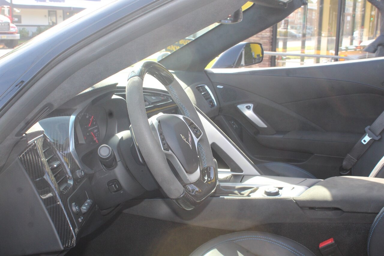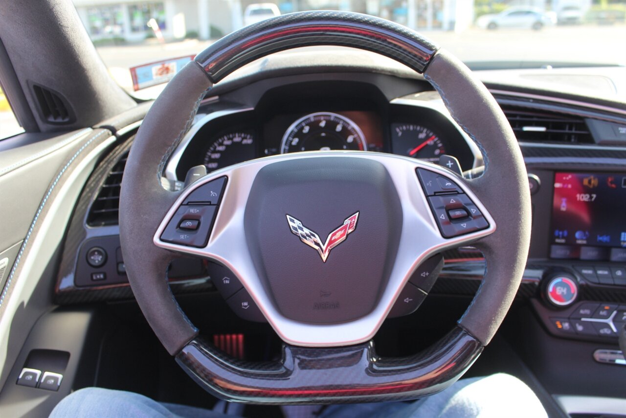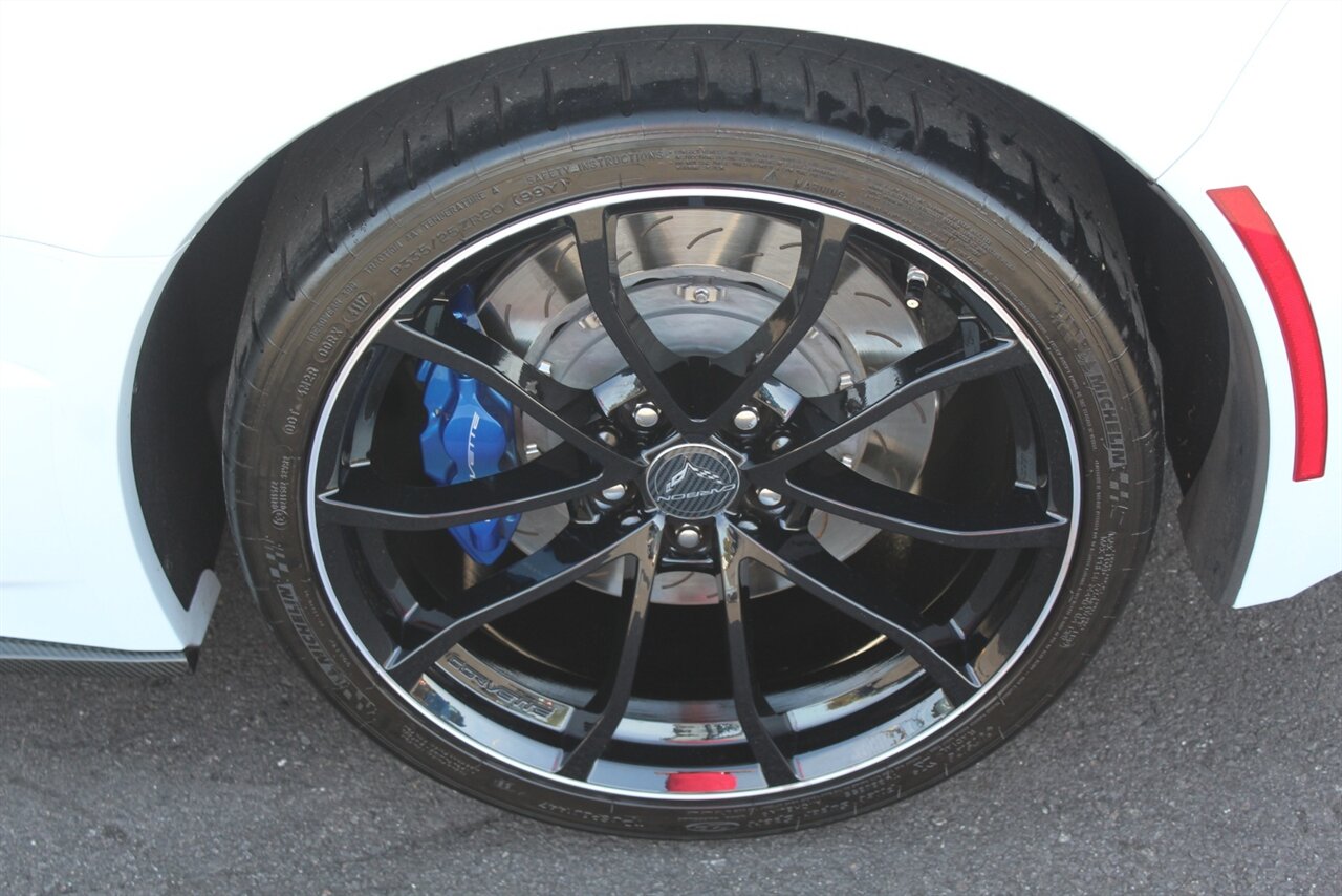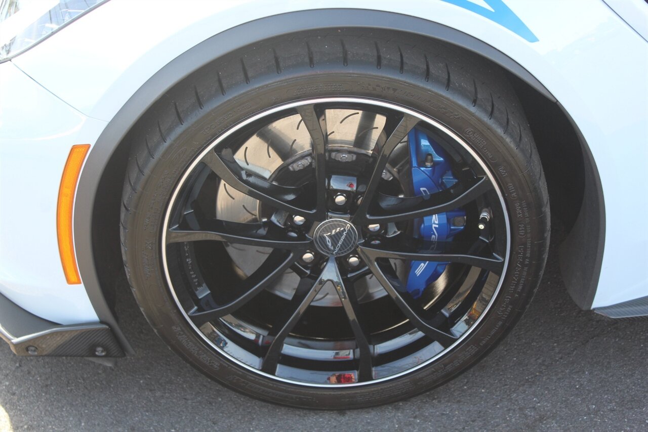 - Carbon 65 EditionIncludes Carbon 65 fender and door graphics, carbon flash badge package, carbon flash painted outside mirrors, exposed carbon rear spoiler, exposed carbon fiber weave hood insert, exposed carbon fiber splitter and rockers, Grand Sport style 19 x 10 inch front and 20 x 12 inch rear black aluminum wheels, carbon fiber wheel center caps with crossed flag logo, visible carbon fiber removable roof panel, Carbon Edition sill plates, and blue contrast stitching on seats, instrument panel, doors, console, shifter, boot and shift paddles.