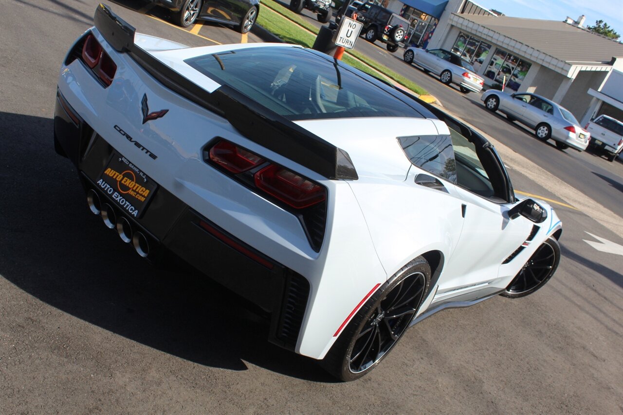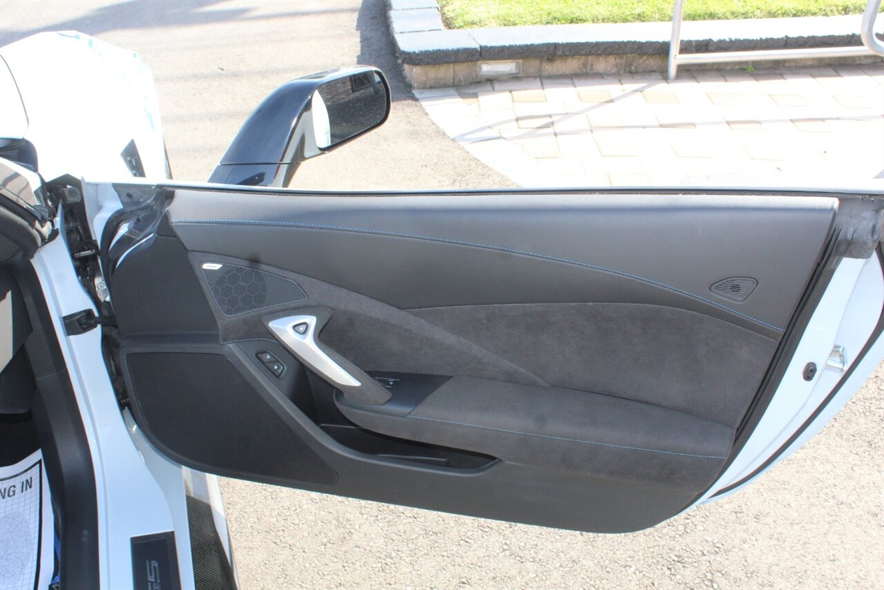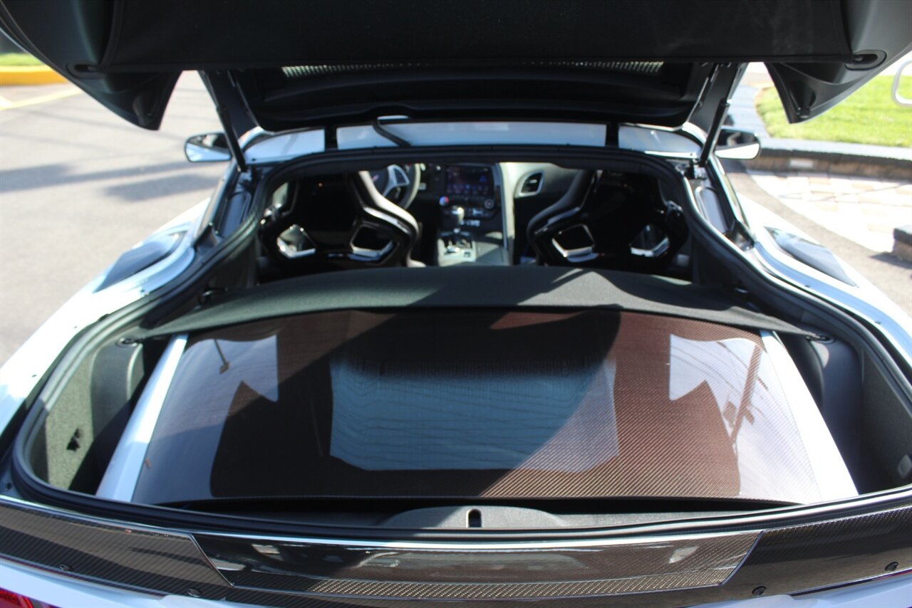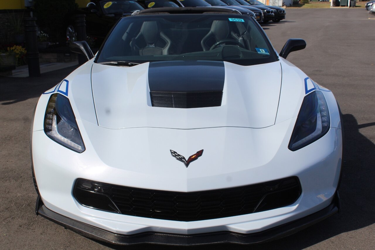 - Carbon 65 EditionIncludes Carbon 65 fender and door graphics, carbon flash badge package, carbon flash painted outside mirrors, exposed carbon rear spoiler, exposed carbon fiber weave hood insert, exposed carbon fiber splitter and rockers, Grand Sport style 19 x 10 inch front and 20 x 12 inch rear black aluminum wheels, carbon fiber wheel center caps with crossed flag logo, visible carbon fiber removable roof panel, Carbon Edition sill plates, and blue contrast stitching on seats, instrument panel, doors, console, shifter, boot and shift paddles.