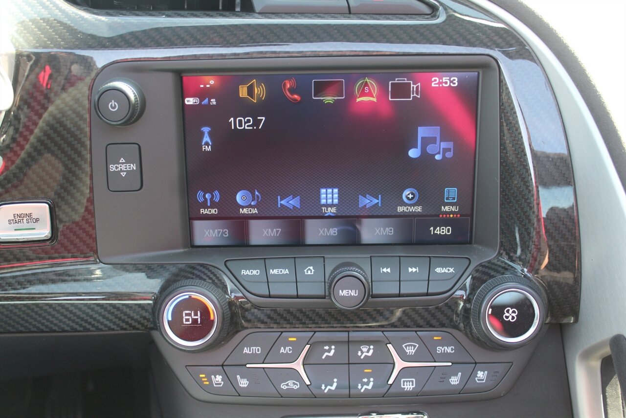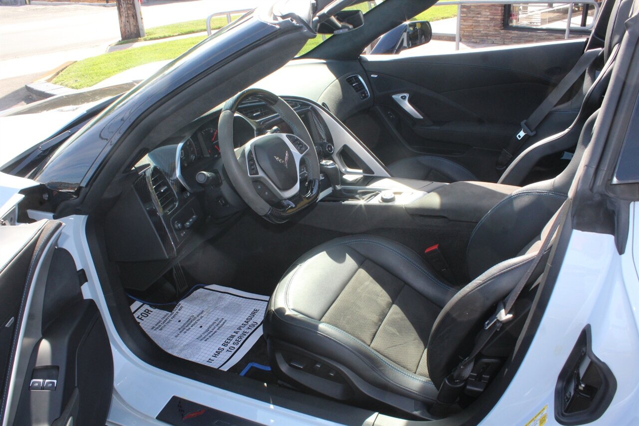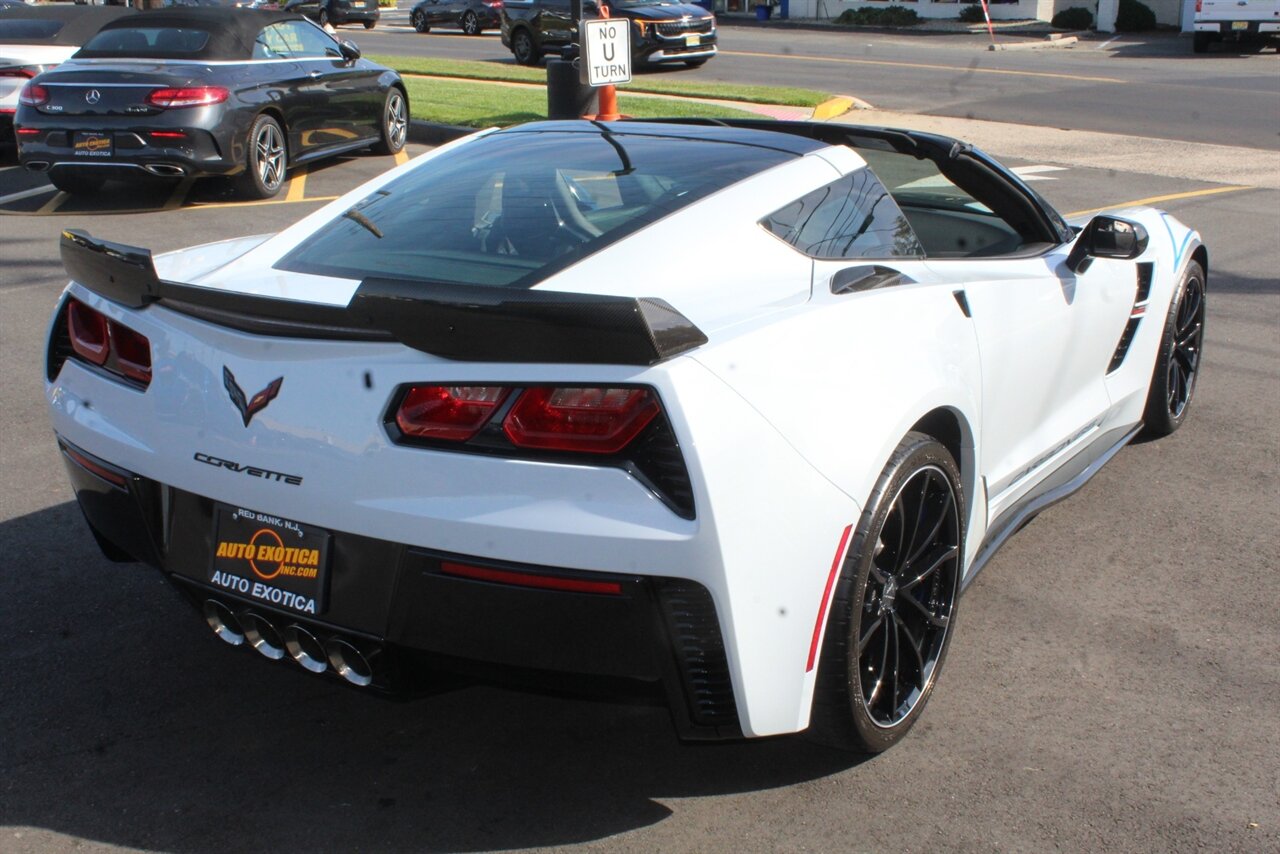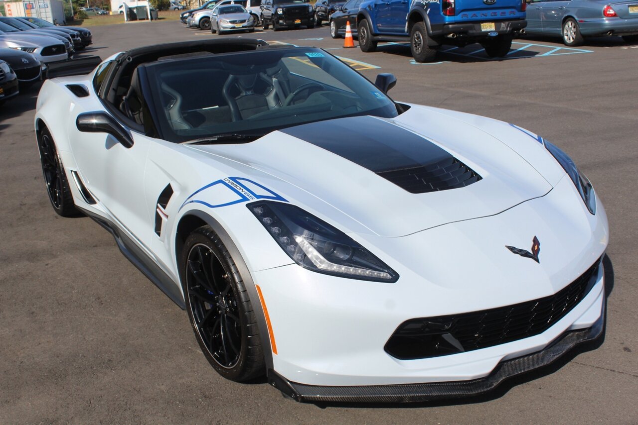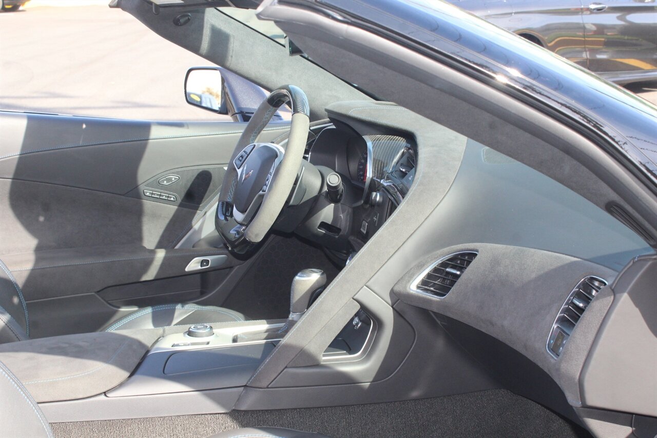 - Carbon 65 EditionIncludes Carbon 65 fender and door graphics, carbon flash badge package, carbon flash painted outside mirrors, exposed carbon rear spoiler, exposed carbon fiber weave hood insert, exposed carbon fiber splitter and rockers, Grand Sport style 19 x 10 inch front and 20 x 12 inch rear black aluminum wheels, carbon fiber wheel center caps with crossed flag logo, visible carbon fiber removable roof panel, Carbon Edition sill plates, and blue contrast stitching on seats, instrument panel, doors, console, shifter, boot and shift paddles.