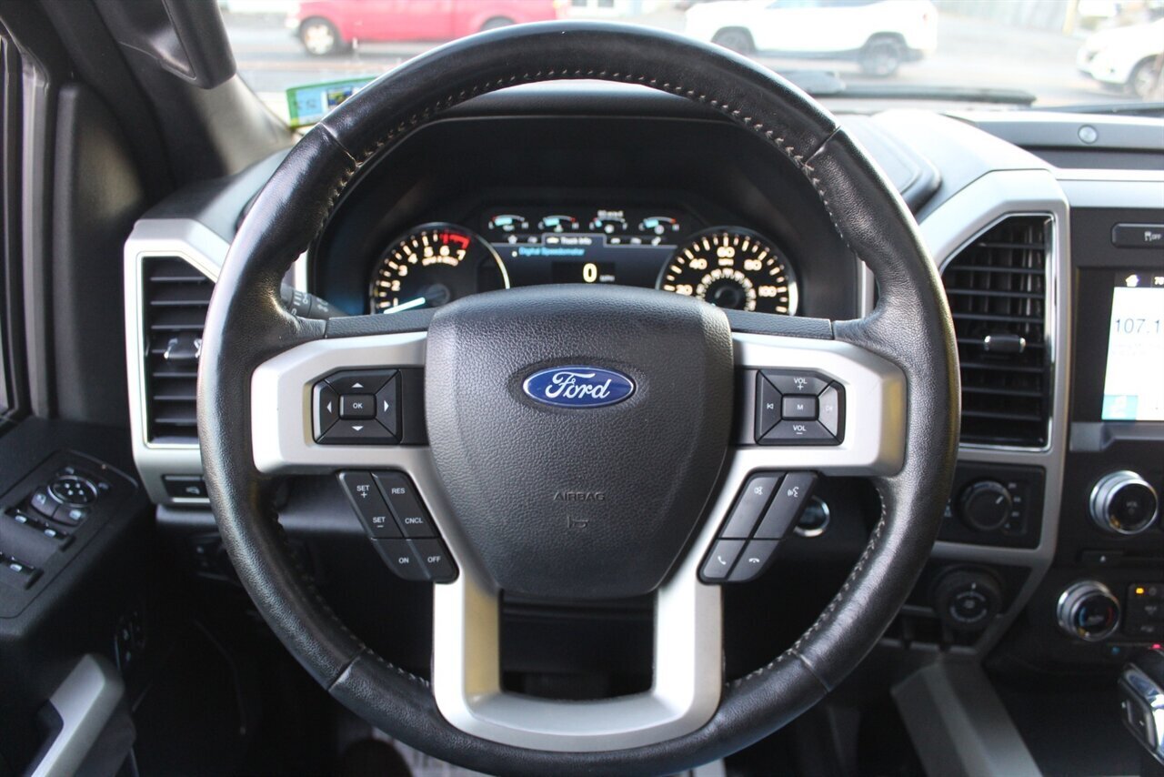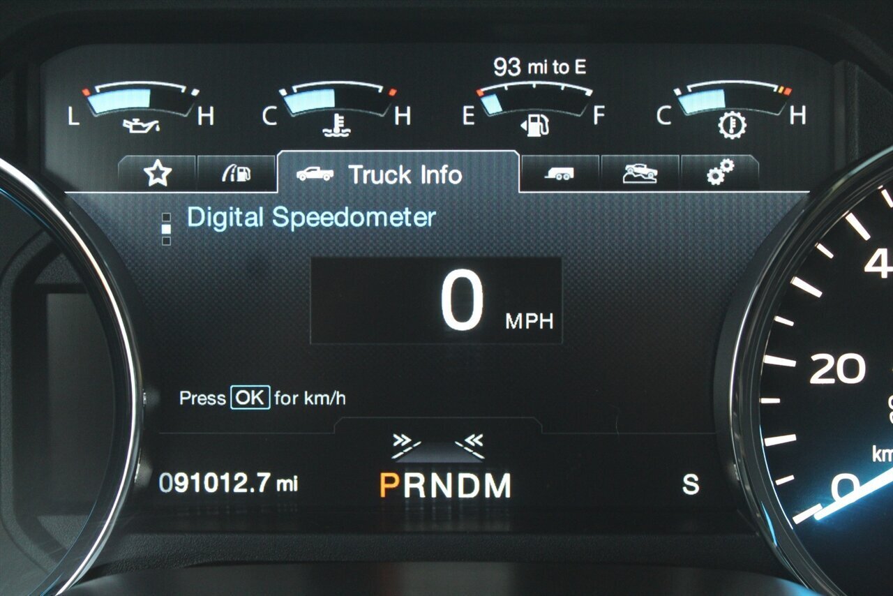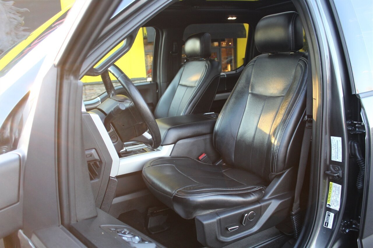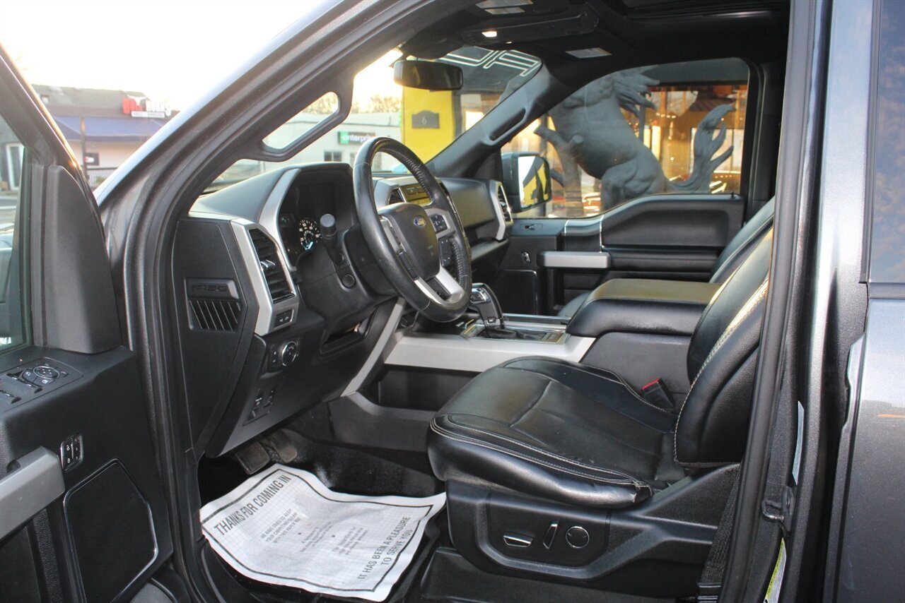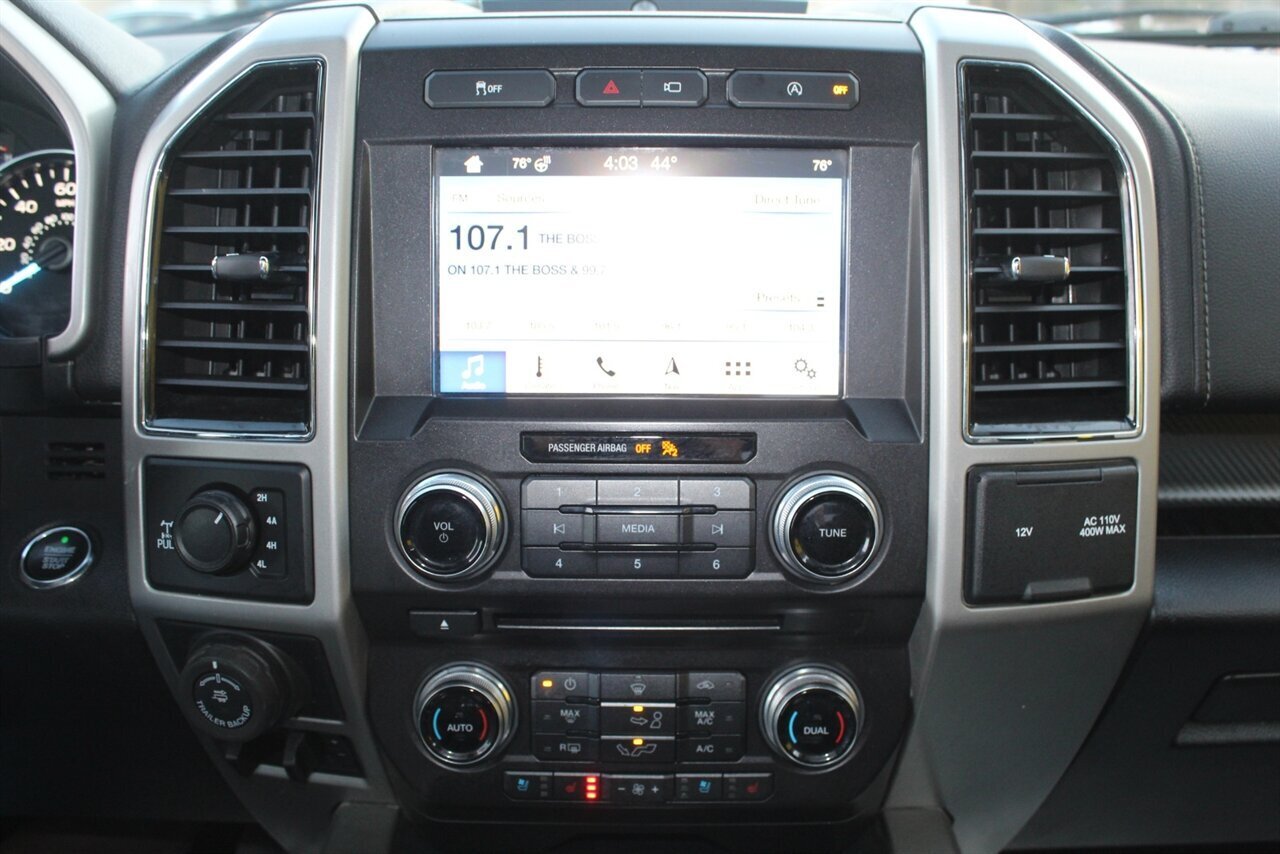 - Equipment Group 502AIncludes vehicle with standard equipment, BLIS (Blind Spot Information System) with Cross-Traffic Alert (BLIS sensor in LED taillamp), remote start system, remote tailgate release, reverse sensing system, quad beam LED headlamps and LED taillamps, automatic high beam lights with rain-sensing windshield wipers, heated windshield wiper park, LED fog lamps, LED side mirror spotlights, power folding, power glass side view mirrors with heat, turn signals, memory, auto-dimming feature on drivers side, high-intensity LED security approach lamps, one 110V/400W outlet (two with bucket seats), universal garage door opener, power tilt and telescoping steering column with memory, heated steering wheel, heated and cooled leather-trimmed bucket seats, 10-way power driver and passenger seats, memory driver seat, heated second row seats, flow-through console with floor shift, B&O PLAY Premium single-CD player, HD radio, SYNC Connect (door lock and unlock, schedule specific time for remote start, locate parked vehicle, and check vehicle status using compatible smart phone), SiriusXM Satellite Radio, voice-activated touchscreen navigation with pinch to zoom capability, SiriusXM Traffic and Travel Link with five years of service in the 48 contiguous United States and D.C., and Lariat Chrome Appearance Package including 18 inch chrome-like PVD wheels, 275/65R18 OWL all-terrain tires, chrome angular step bars, chrome door handles with body-color bezel, two chrome front tow hooks, chrome single-tip exhaust, chrome skull caps on exterior mirrors, and chrome three-bar style grille with chrome surround and chrome mesh insert. When Two-Tone Paint is selected, front and rear chrome bumpers are replaced with front and rear accent-color bumpers, and standard body-color wheel lip moldings are replaced with accent-color wheel lip moldings.