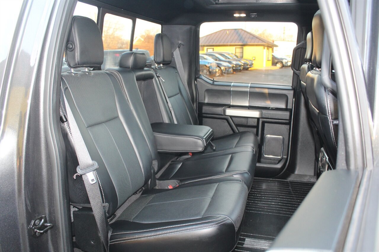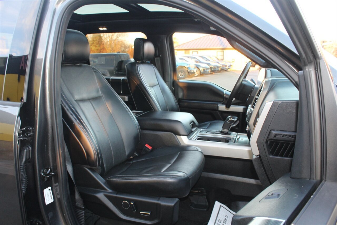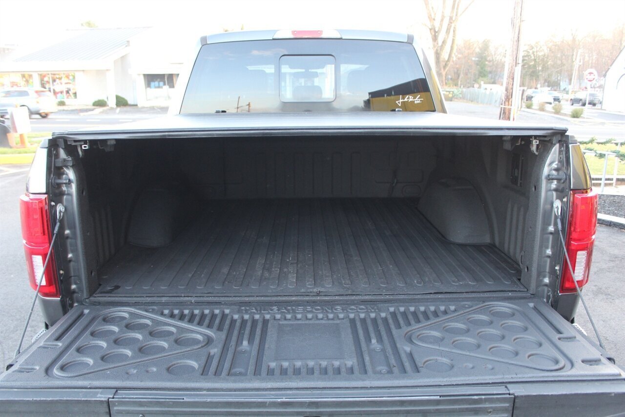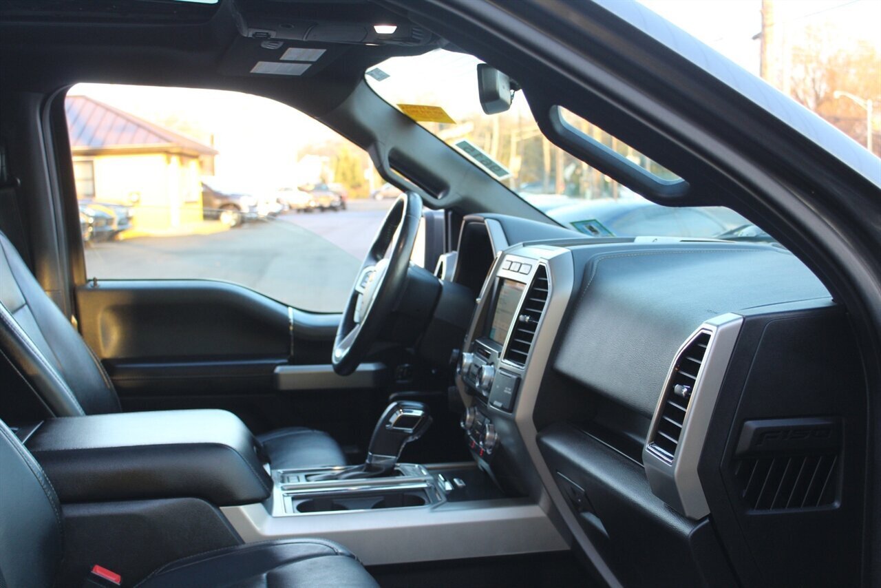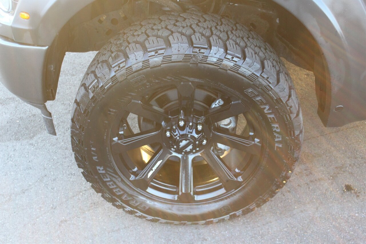 - Equipment Group 502AIncludes vehicle with standard equipment, BLIS (Blind Spot Information System) with Cross-Traffic Alert (BLIS sensor in LED taillamp), remote start system, remote tailgate release, reverse sensing system, quad beam LED headlamps and LED taillamps, automatic high beam lights with rain-sensing windshield wipers, heated windshield wiper park, LED fog lamps, LED side mirror spotlights, power folding, power glass side view mirrors with heat, turn signals, memory, auto-dimming feature on drivers side, high-intensity LED security approach lamps, one 110V/400W outlet (two with bucket seats), universal garage door opener, power tilt and telescoping steering column with memory, heated steering wheel, heated and cooled leather-trimmed bucket seats, 10-way power driver and passenger seats, memory driver seat, heated second row seats, flow-through console with floor shift, B&O PLAY Premium single-CD player, HD radio, SYNC Connect (door lock and unlock, schedule specific time for remote start, locate parked vehicle, and check vehicle status using compatible smart phone), SiriusXM Satellite Radio, voice-activated touchscreen navigation with pinch to zoom capability, SiriusXM Traffic and Travel Link with five years of service in the 48 contiguous United States and D.C., and Lariat Chrome Appearance Package including 18 inch chrome-like PVD wheels, 275/65R18 OWL all-terrain tires, chrome angular step bars, chrome door handles with body-color bezel, two chrome front tow hooks, chrome single-tip exhaust, chrome skull caps on exterior mirrors, and chrome three-bar style grille with chrome surround and chrome mesh insert. When Two-Tone Paint is selected, front and rear chrome bumpers are replaced with front and rear accent-color bumpers, and standard body-color wheel lip moldings are replaced with accent-color wheel lip moldings.