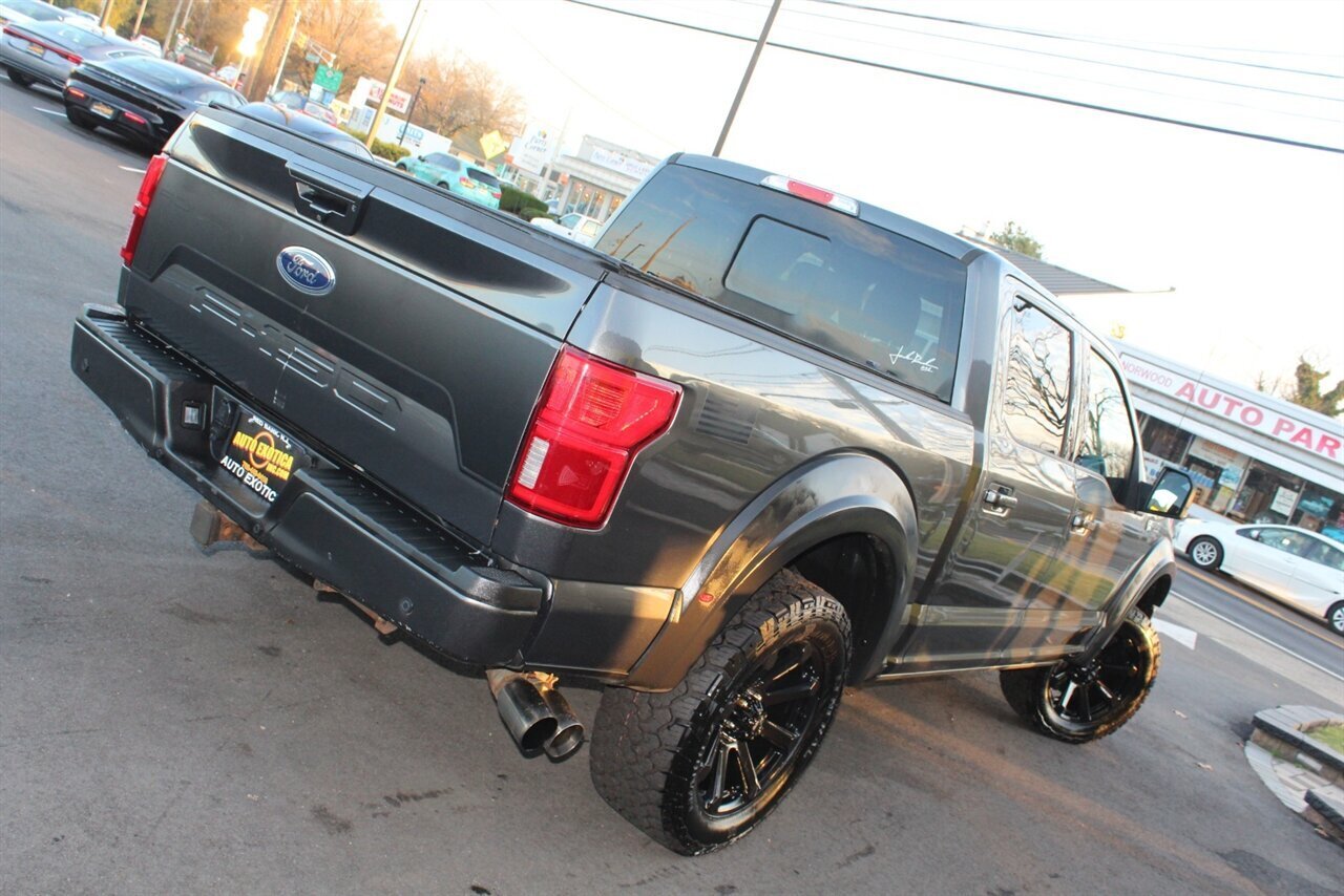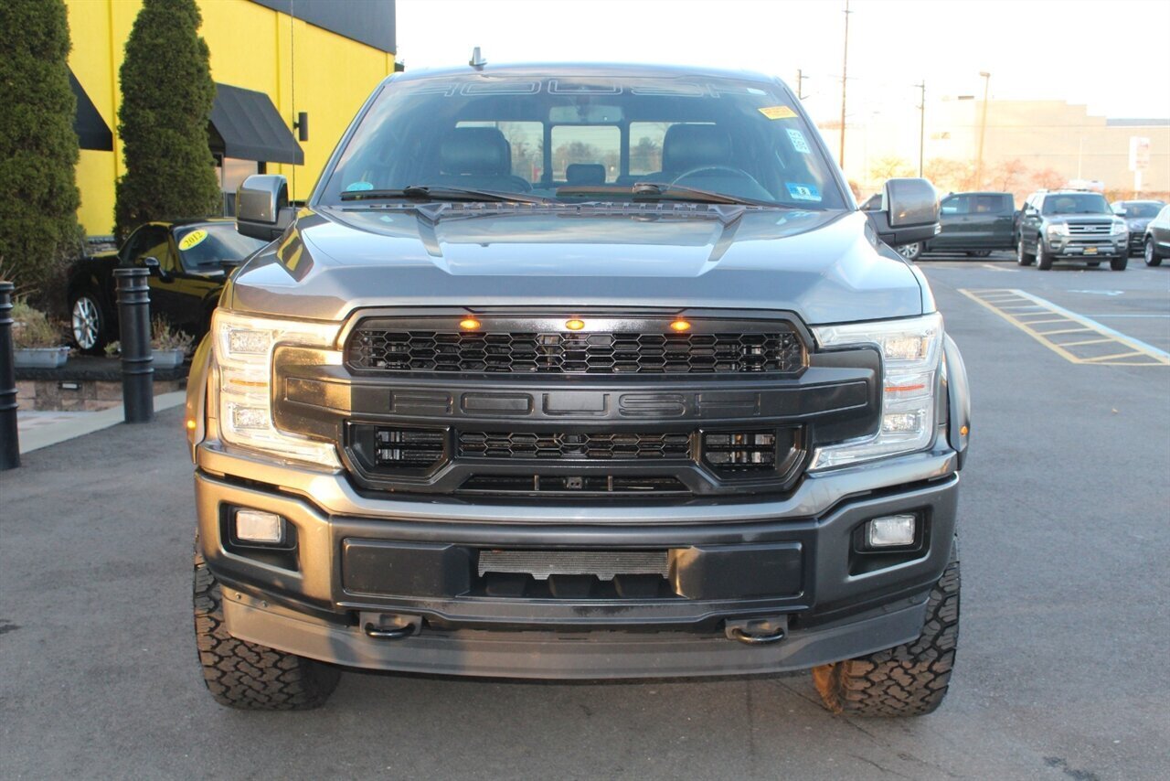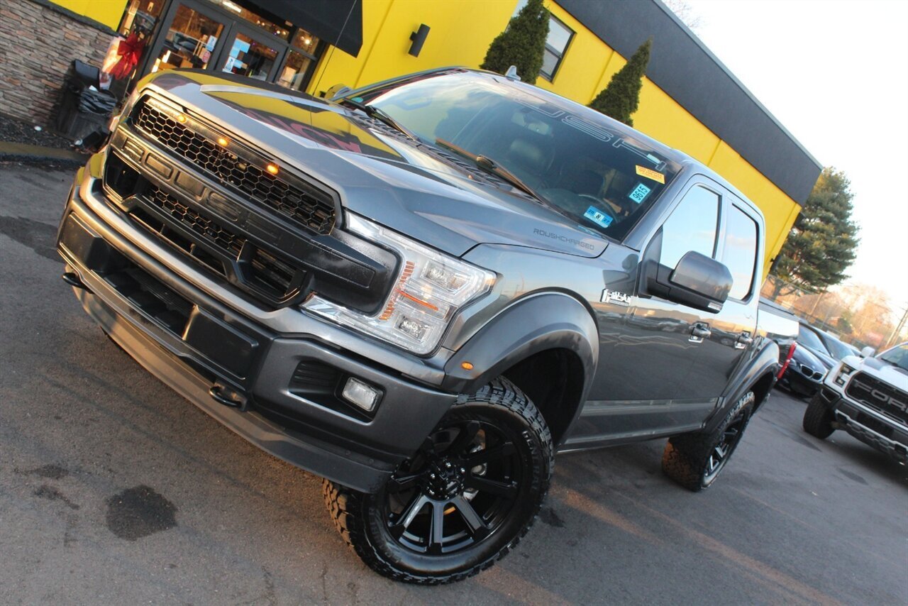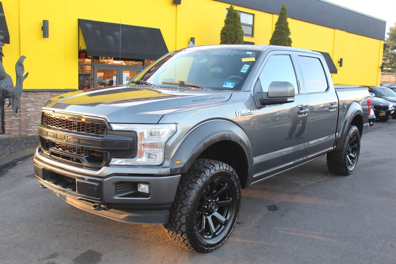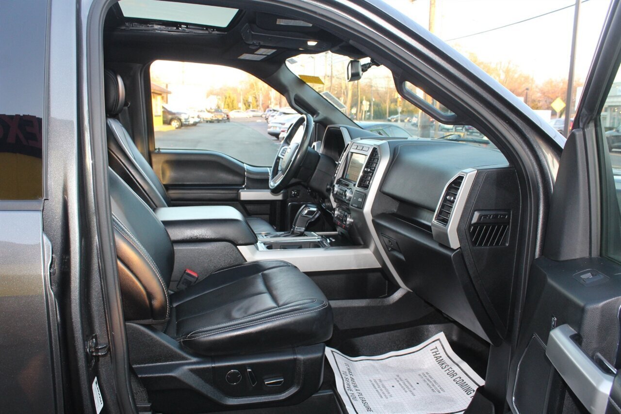 - Equipment Group 502AIncludes vehicle with standard equipment, BLIS (Blind Spot Information System) with Cross-Traffic Alert (BLIS sensor in LED taillamp), remote start system, remote tailgate release, reverse sensing system, quad beam LED headlamps and LED taillamps, automatic high beam lights with rain-sensing windshield wipers, heated windshield wiper park, LED fog lamps, LED side mirror spotlights, power folding, power glass side view mirrors with heat, turn signals, memory, auto-dimming feature on drivers side, high-intensity LED security approach lamps, one 110V/400W outlet (two with bucket seats), universal garage door opener, power tilt and telescoping steering column with memory, heated steering wheel, heated and cooled leather-trimmed bucket seats, 10-way power driver and passenger seats, memory driver seat, heated second row seats, flow-through console with floor shift, B&O PLAY Premium single-CD player, HD radio, SYNC Connect (door lock and unlock, schedule specific time for remote start, locate parked vehicle, and check vehicle status using compatible smart phone), SiriusXM Satellite Radio, voice-activated touchscreen navigation with pinch to zoom capability, SiriusXM Traffic and Travel Link with five years of service in the 48 contiguous United States and D.C., and Lariat Chrome Appearance Package including 18 inch chrome-like PVD wheels, 275/65R18 OWL all-terrain tires, chrome angular step bars, chrome door handles with body-color bezel, two chrome front tow hooks, chrome single-tip exhaust, chrome skull caps on exterior mirrors, and chrome three-bar style grille with chrome surround and chrome mesh insert. When Two-Tone Paint is selected, front and rear chrome bumpers are replaced with front and rear accent-color bumpers, and standard body-color wheel lip moldings are replaced with accent-color wheel lip moldings.