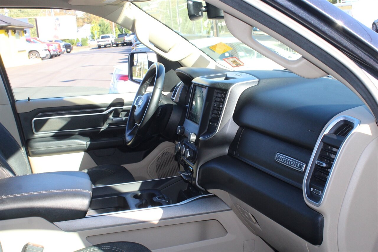 - Big Horn Level 1 Equipment GroupIncludes UConnect 4 with 8.4 inch touch screen display, Apple Carplay, Android Auto, AM/FM radio, single disc remote CD player, one year of SiriusXM Satellite Radio service, universal garage door opener, 8-way power adjustable driver seat with power lumbar, power adjustable pedals, rearview auto-dimming mirror, Big Horn IP badge, dual sun visors with illuminating vanity mirrors, glove box lamp, power sliding rear window with defroster, power folding heated exterior mirrors with supplemental signals and courtesy lamps, auto-dimming driver exterior mirror, Class IV receiver hitch, and rear dome light with on/off switch.