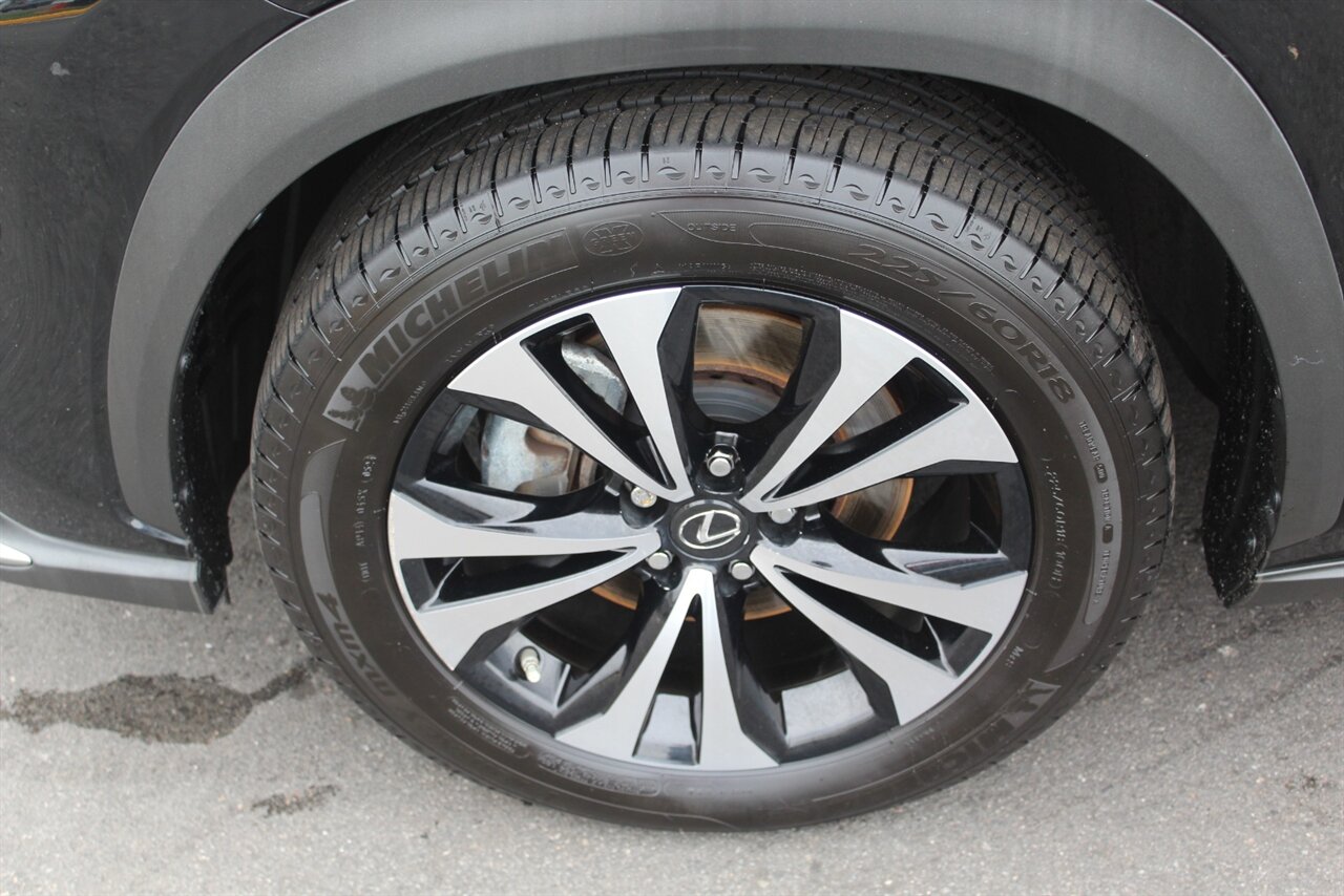 - F SPORT Premium PackageIncludes 18-inch split-five-spoke alloy wheels with 225/60R18 tires, power moonroof, heated and ventilated front seats, Lexus Memory System to control power driver's seat, outside mirrors and steering column, enhanced LED daytime running lights with integrated turn indicators.