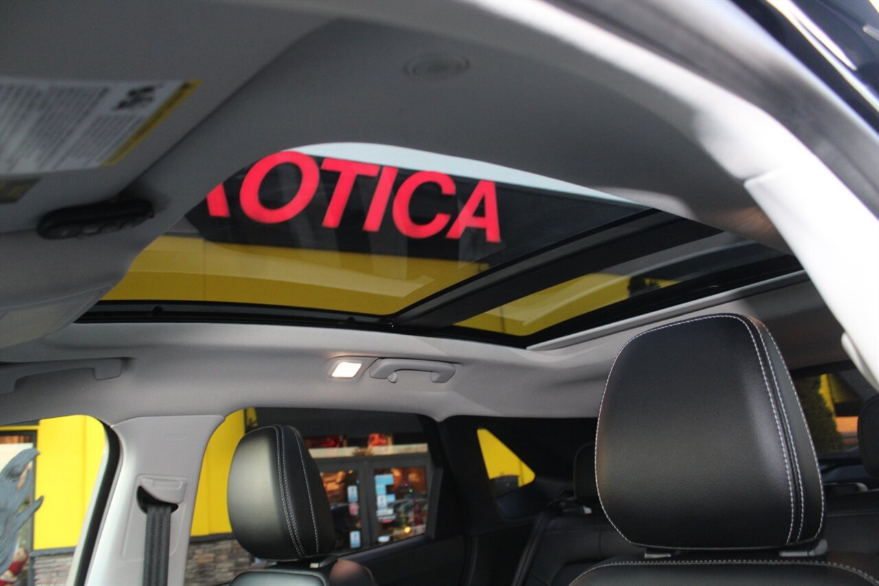 - Panoramic Vista RoofIncludes power panoramic Vista roof with power shade and black roof-rack side rails.