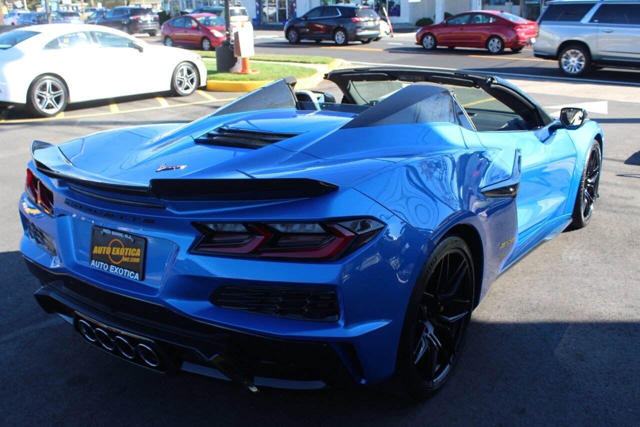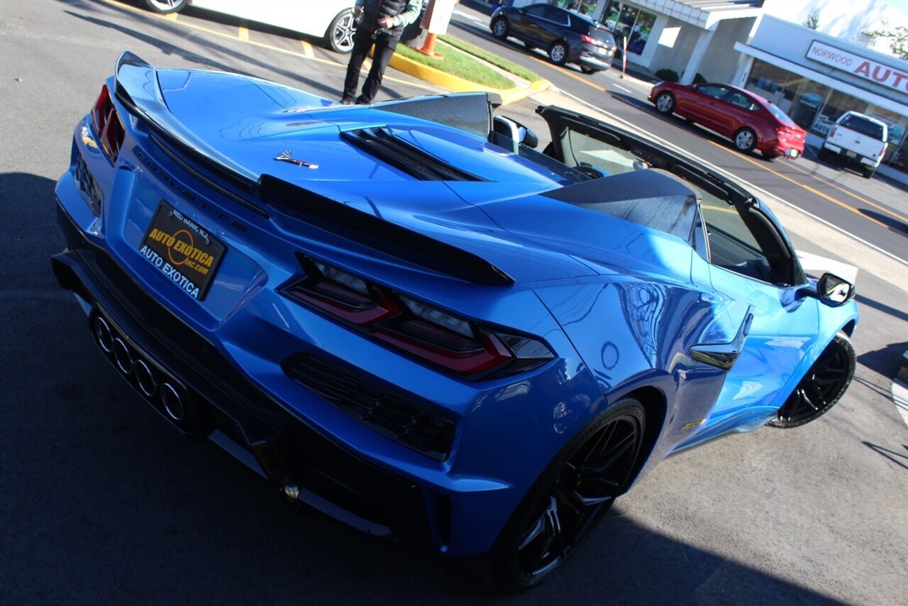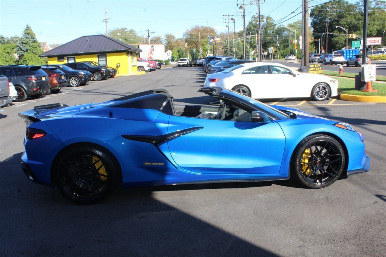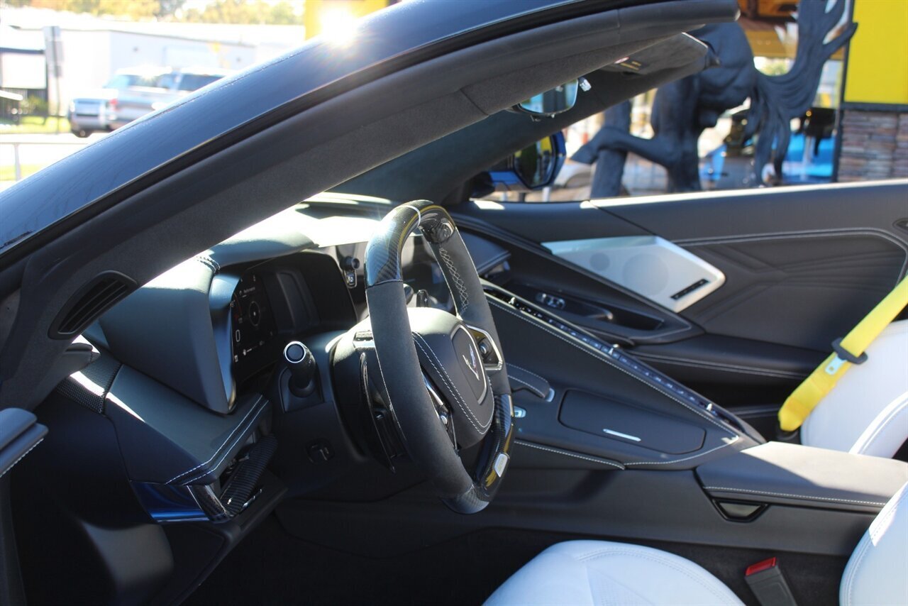 UP FOR SALE IS A PRISTINE 2024 CHEVROLET CORVETTE Z06 3LZ CONVERTIBLE. PAINTED IN A RIPTIDE BLUE METALLIC WITH SKY COOL GRAY /JET BLACK OVERRIDE ($695) NAPPA LEATHER & ALCANTARA SUEDE INTERIOR AND A POWER RETRACTING CARBON FLASH HARD-TOP ($1,295). THIS CORVETTE IS POWERED BY A 5.5L LT6 V8 GENERATING 670 HP & 460 LBS-FT AND A 8 SPEED DUAL CLUTCH AUTOMATIC WITH 4 SELECTABLE DRIVE MODES (TOUR/SPORT/TRACK/A CUSTOM "Z" MODE).THIS CORVETTE IS OPTIONED WITH A FRONT AXLE LIFT SYSTEM ($2,595), WHICH GIVES THIS CORVETTE THE ABILITY TO ADJUST THE HEIGHT OF THE FRONT SUSPENSION AT THE PUSH OF A BUTTON, OR AUTOMATICALLY WITH THE LOCATION MEMORY FEATURE. THE EXTERIOR IS BEAUTIFULY APPOINTED WITH CARBON FLASH PAINTED GROUND EFFECTS ($2,995) AND MIRROR COVERS ($195), A SET OF 20" /21" SPIDER DESIGN BLACK FORGED ALUMINUM WHEELS ($495) WITH BRIGHT YELLOW PAINTED BRAKE CALIPERS, AND THE C8.R JAKE GRAPHICS PACKAGE ($895). THIS CORVETTE IS LOADED WITH BOTH LUXURY & TECH, SUCH AS A NAPPA LEATHER TRIMMED INTERIOR WITH SUEDE HEADLINER, HEATED & COOLED, FULL POWER, NAPPA LEATHER / ALCANTARA SUEDE TRIMMED GT2 BUCKET SEATS WITH A HEATED ALCANTARA SUEDE / CARBON FIBER TRIMMED STEERING WHEEL ($695). INFOTAINMENT IS PROVIDED BY CHEVY'S MYLINK BLUETOOTH & NAVIGATION SYSTEM WITH A 14 SPEAKER BOSE PERFORMANCE SERIES SOUND SYSTEM, AS WELL AS A HEADS-UP DISPLAY WITH REAR-VIEW CAMERA MIRROR & AUTO-HIGH BEAMS, AND BLIND-SPOT, LANE-KEEP, AND FORWARD COLLISION ASSISTS WITH SURROUND-VIEW CAMERA AND FRONT & REAR PARKING DISTANCE SENSORS.