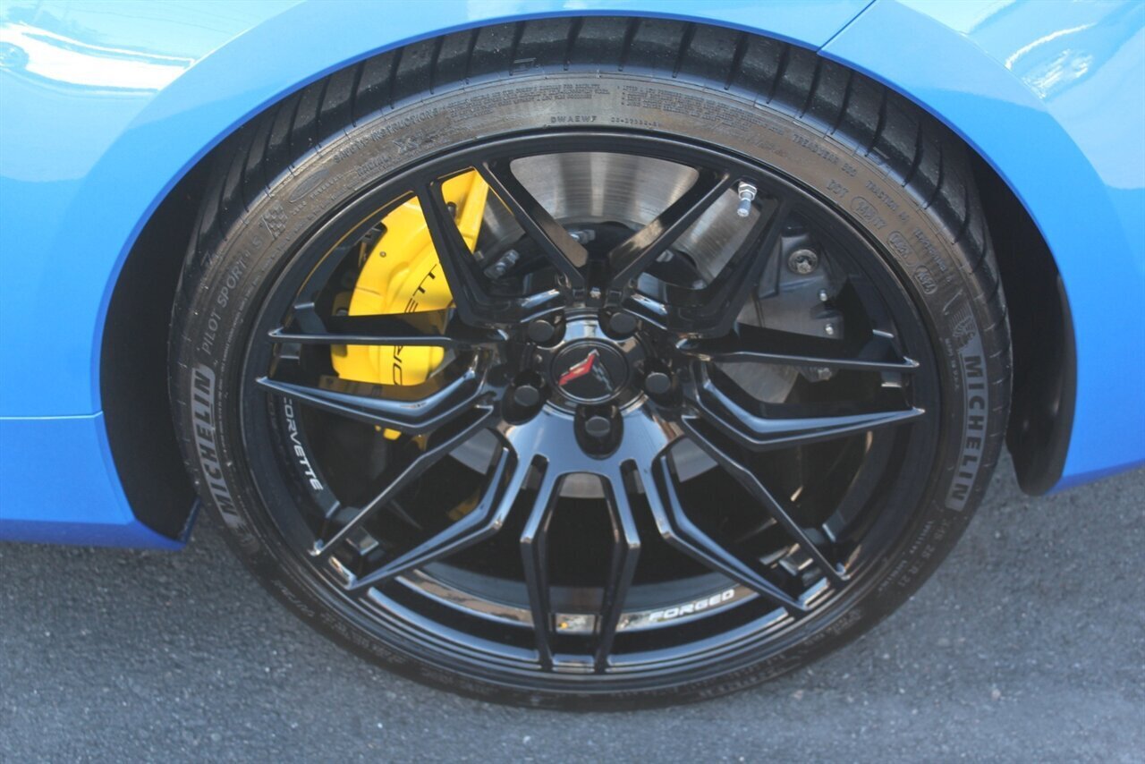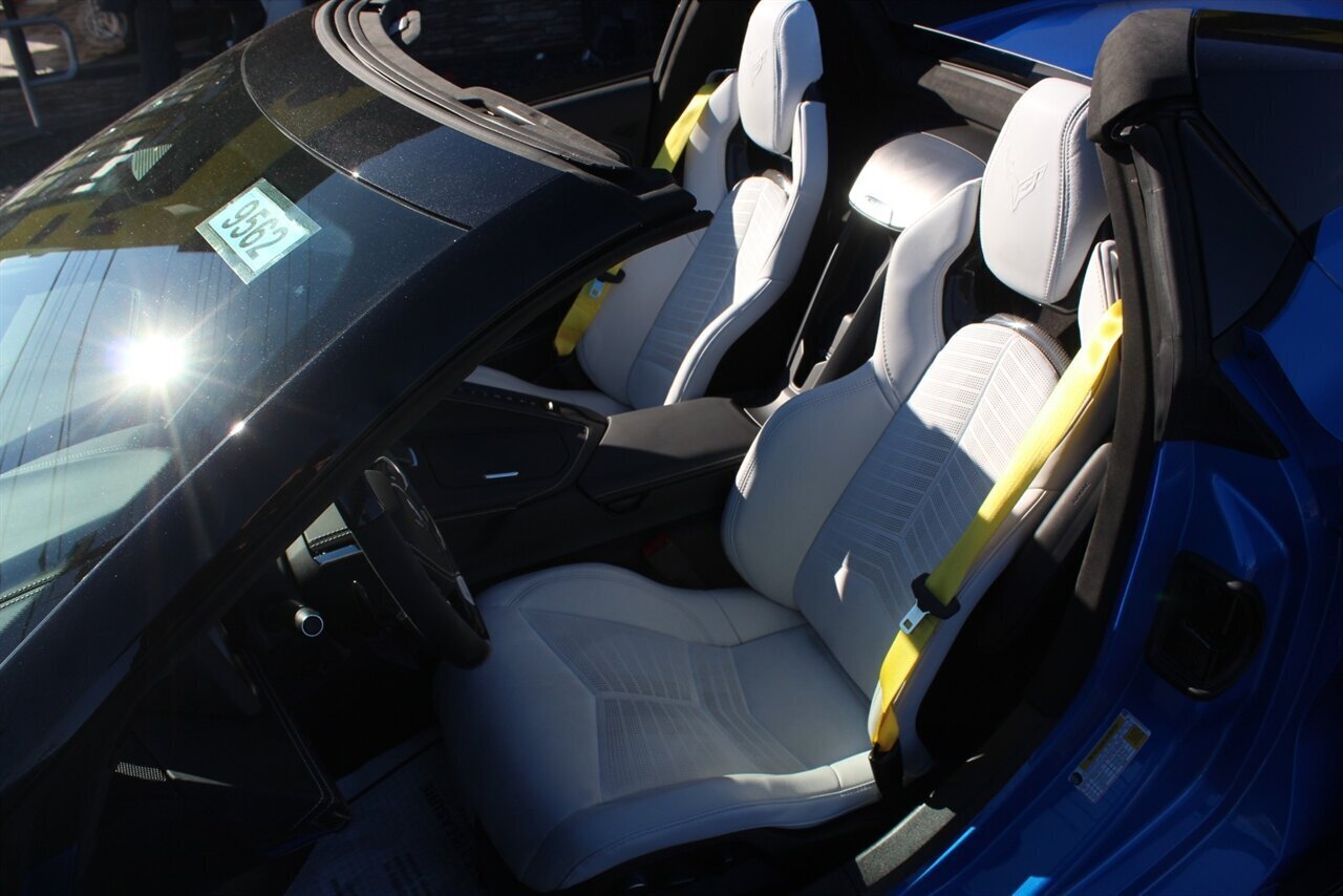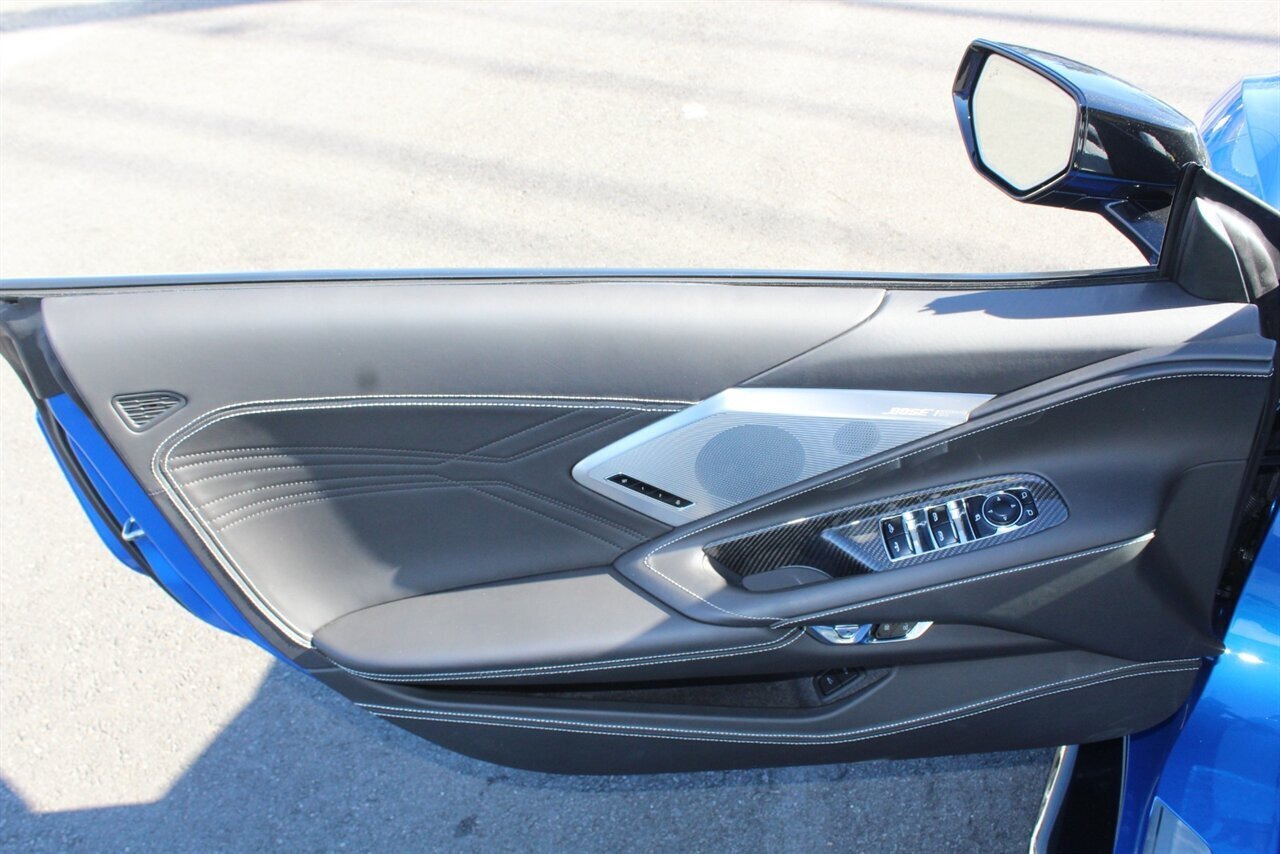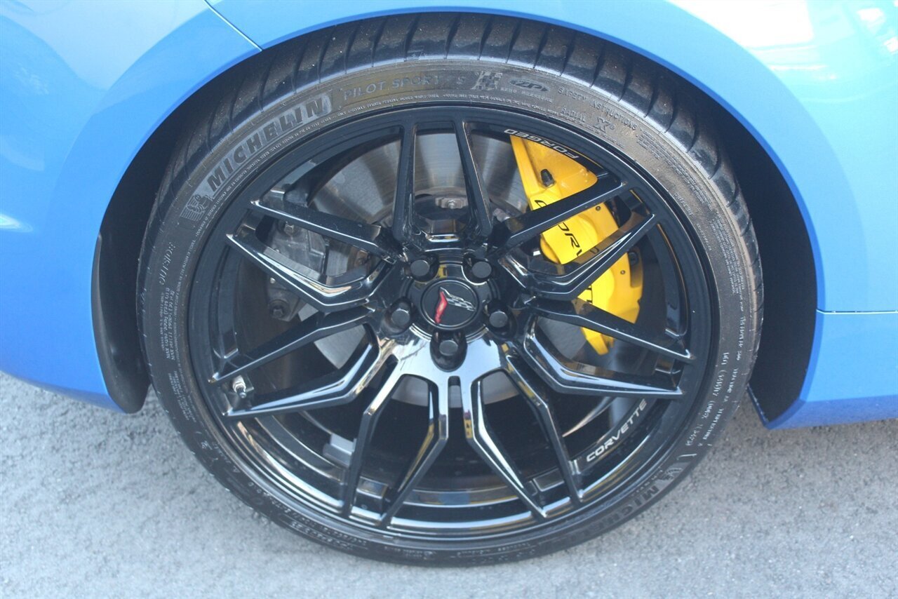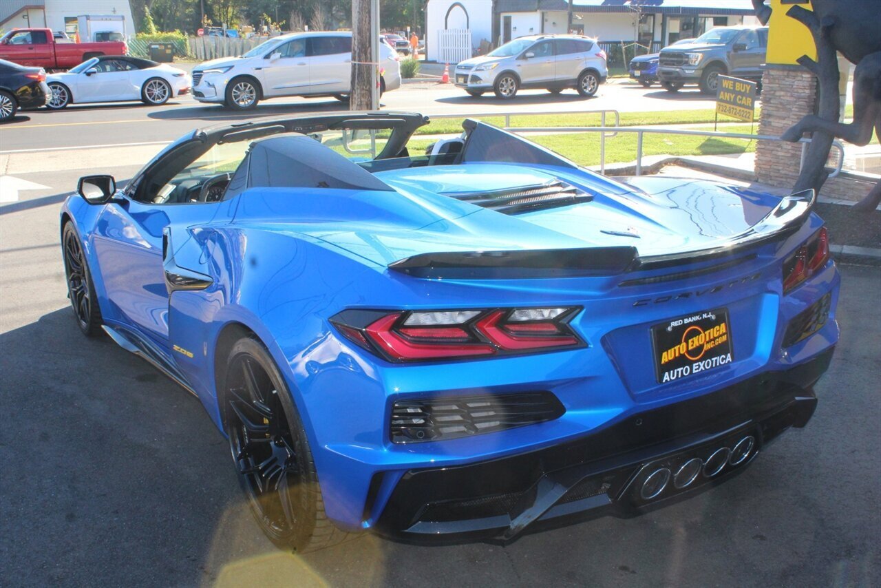 UP FOR SALE IS A PRISTINE 2024 CHEVROLET CORVETTE Z06 3LZ CONVERTIBLE. PAINTED IN A RIPTIDE BLUE METALLIC WITH SKY COOL GRAY /JET BLACK OVERRIDE ($695) NAPPA LEATHER & ALCANTARA SUEDE INTERIOR AND A POWER RETRACTING CARBON FLASH HARD-TOP ($1,295). THIS CORVETTE IS POWERED BY A 5.5L LT6 V8 GENERATING 670 HP & 460 LBS-FT AND A 8 SPEED DUAL CLUTCH AUTOMATIC WITH 4 SELECTABLE DRIVE MODES (TOUR/SPORT/TRACK/A CUSTOM "Z" MODE).THIS CORVETTE IS OPTIONED WITH A FRONT AXLE LIFT SYSTEM ($2,595), WHICH GIVES THIS CORVETTE THE ABILITY TO ADJUST THE HEIGHT OF THE FRONT SUSPENSION AT THE PUSH OF A BUTTON, OR AUTOMATICALLY WITH THE LOCATION MEMORY FEATURE. THE EXTERIOR IS BEAUTIFULY APPOINTED WITH CARBON FLASH PAINTED GROUND EFFECTS ($2,995) AND MIRROR COVERS ($195), A SET OF 20" /21" SPIDER DESIGN BLACK FORGED ALUMINUM WHEELS ($495) WITH BRIGHT YELLOW PAINTED BRAKE CALIPERS, AND THE C8.R JAKE GRAPHICS PACKAGE ($895). THIS CORVETTE IS LOADED WITH BOTH LUXURY & TECH, SUCH AS A NAPPA LEATHER TRIMMED INTERIOR WITH SUEDE HEADLINER, HEATED & COOLED, FULL POWER, NAPPA LEATHER / ALCANTARA SUEDE TRIMMED GT2 BUCKET SEATS WITH A HEATED ALCANTARA SUEDE / CARBON FIBER TRIMMED STEERING WHEEL ($695). INFOTAINMENT IS PROVIDED BY CHEVY'S MYLINK BLUETOOTH & NAVIGATION SYSTEM WITH A 14 SPEAKER BOSE PERFORMANCE SERIES SOUND SYSTEM, AS WELL AS A HEADS-UP DISPLAY WITH REAR-VIEW CAMERA MIRROR & AUTO-HIGH BEAMS, AND BLIND-SPOT, LANE-KEEP, AND FORWARD COLLISION ASSISTS WITH SURROUND-VIEW CAMERA AND FRONT & REAR PARKING DISTANCE SENSORS.