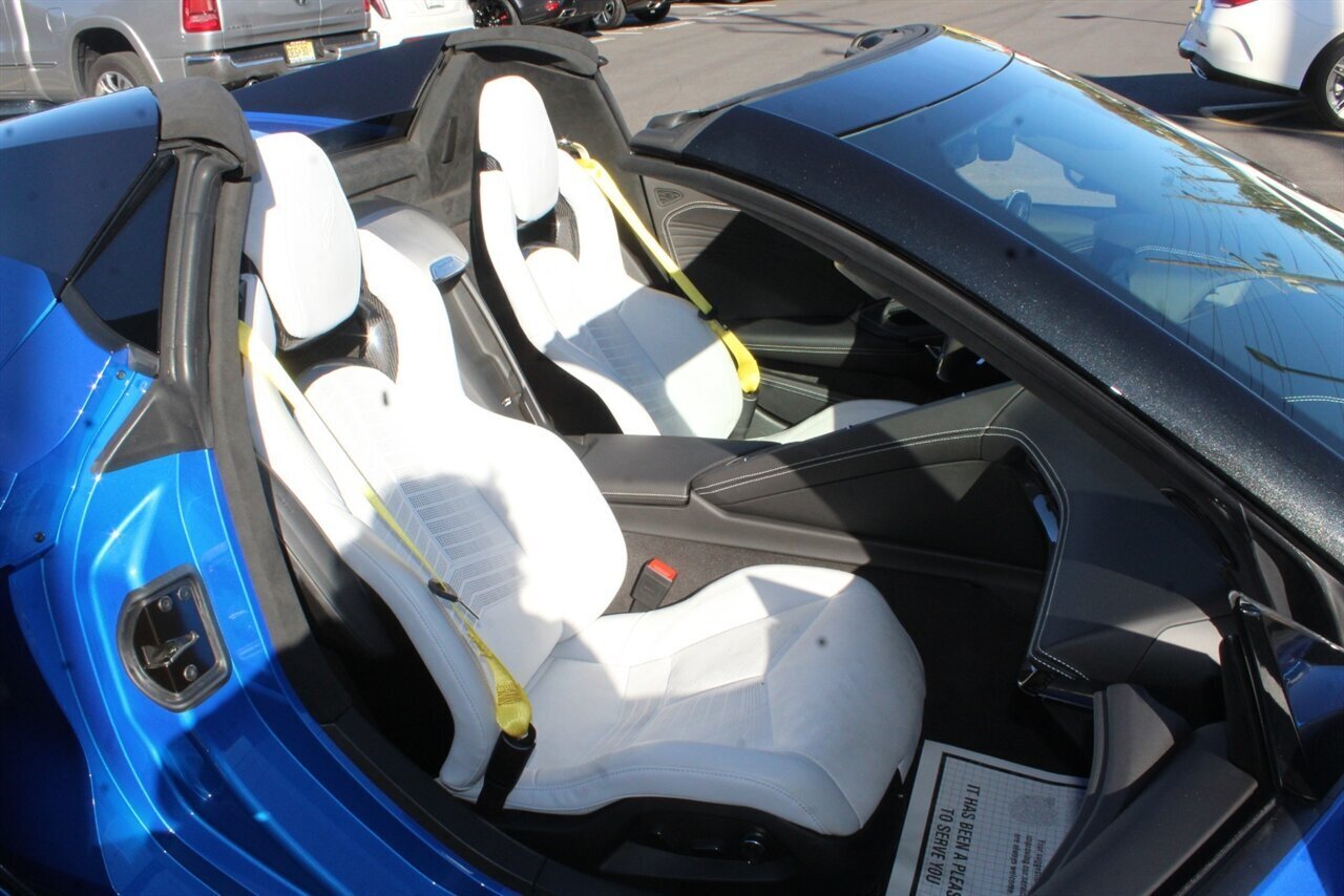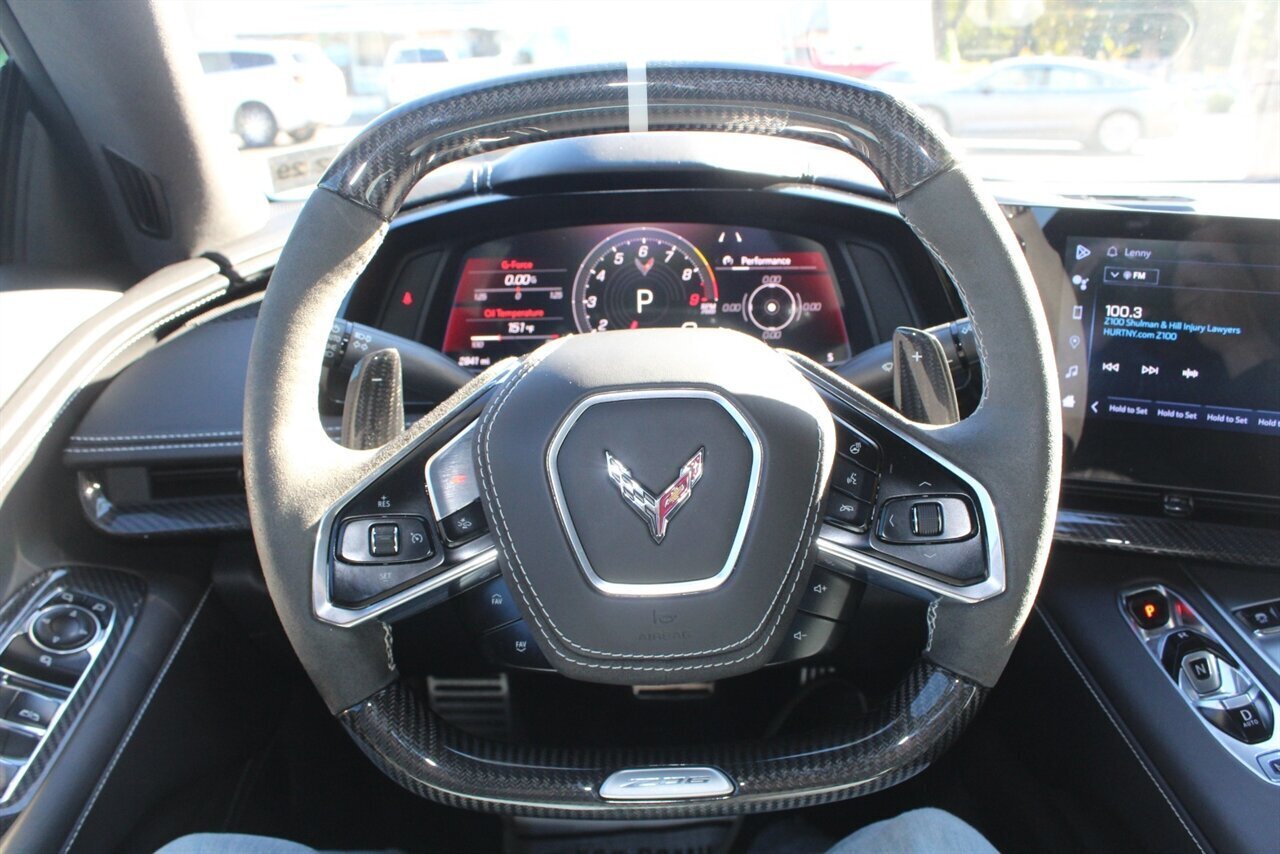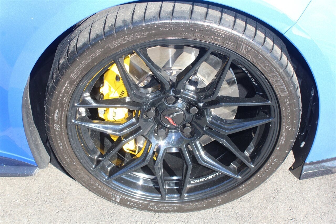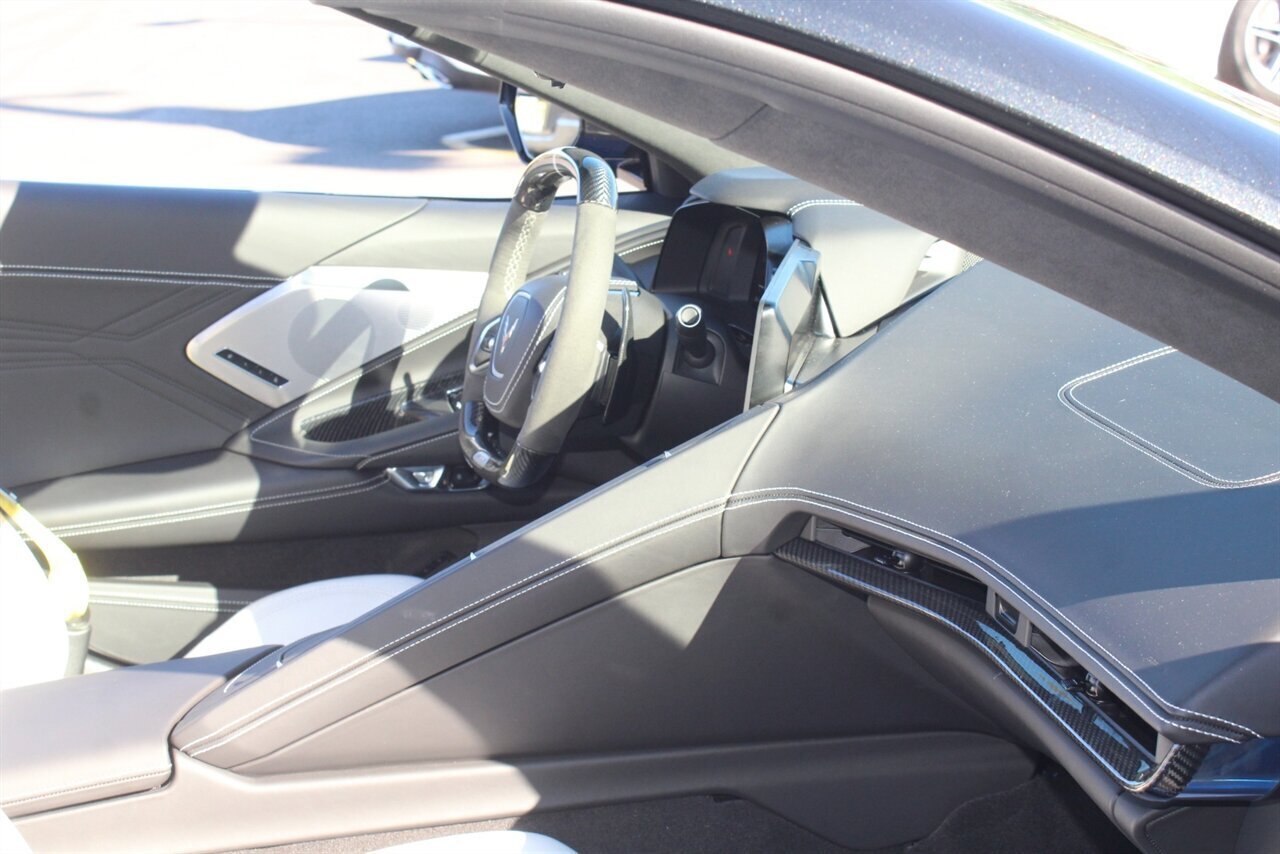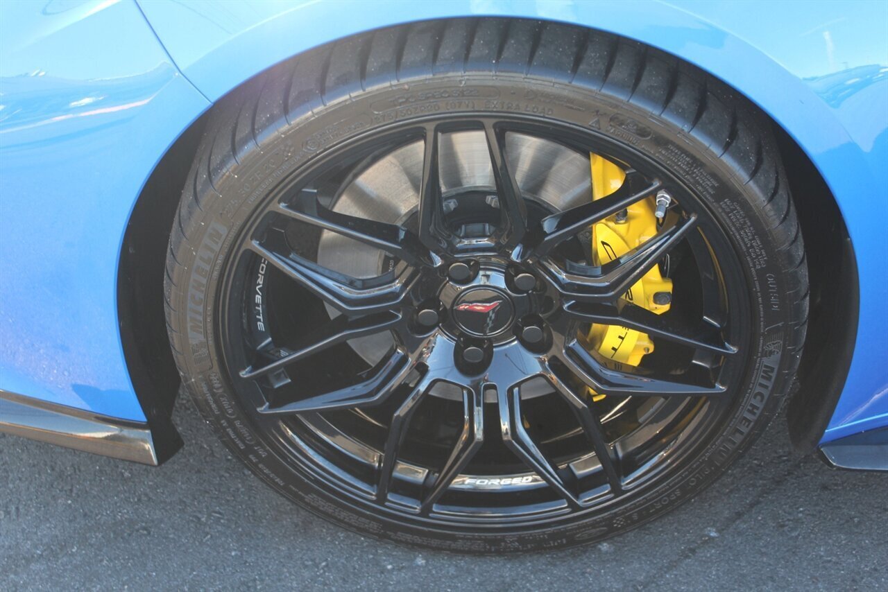 UP FOR SALE IS A PRISTINE 2024 CHEVROLET CORVETTE Z06 3LZ CONVERTIBLE. PAINTED IN A RIPTIDE BLUE METALLIC WITH SKY COOL GRAY /JET BLACK OVERRIDE ($695) NAPPA LEATHER & ALCANTARA SUEDE INTERIOR AND A POWER RETRACTING CARBON FLASH HARD-TOP ($1,295). THIS CORVETTE IS POWERED BY A 5.5L LT6 V8 GENERATING 670 HP & 460 LBS-FT AND A 8 SPEED DUAL CLUTCH AUTOMATIC WITH 4 SELECTABLE DRIVE MODES (TOUR/SPORT/TRACK/A CUSTOM "Z" MODE).THIS CORVETTE IS OPTIONED WITH A FRONT AXLE LIFT SYSTEM ($2,595), WHICH GIVES THIS CORVETTE THE ABILITY TO ADJUST THE HEIGHT OF THE FRONT SUSPENSION AT THE PUSH OF A BUTTON, OR AUTOMATICALLY WITH THE LOCATION MEMORY FEATURE. THE EXTERIOR IS BEAUTIFULY APPOINTED WITH CARBON FLASH PAINTED GROUND EFFECTS ($2,995) AND MIRROR COVERS ($195), A SET OF 20" /21" SPIDER DESIGN BLACK FORGED ALUMINUM WHEELS ($495) WITH BRIGHT YELLOW PAINTED BRAKE CALIPERS, AND THE C8.R JAKE GRAPHICS PACKAGE ($895). THIS CORVETTE IS LOADED WITH BOTH LUXURY & TECH, SUCH AS A NAPPA LEATHER TRIMMED INTERIOR WITH SUEDE HEADLINER, HEATED & COOLED, FULL POWER, NAPPA LEATHER / ALCANTARA SUEDE TRIMMED GT2 BUCKET SEATS WITH A HEATED ALCANTARA SUEDE / CARBON FIBER TRIMMED STEERING WHEEL ($695). INFOTAINMENT IS PROVIDED BY CHEVY'S MYLINK BLUETOOTH & NAVIGATION SYSTEM WITH A 14 SPEAKER BOSE PERFORMANCE SERIES SOUND SYSTEM, AS WELL AS A HEADS-UP DISPLAY WITH REAR-VIEW CAMERA MIRROR & AUTO-HIGH BEAMS, AND BLIND-SPOT, LANE-KEEP, AND FORWARD COLLISION ASSISTS WITH SURROUND-VIEW CAMERA AND FRONT & REAR PARKING DISTANCE SENSORS.
