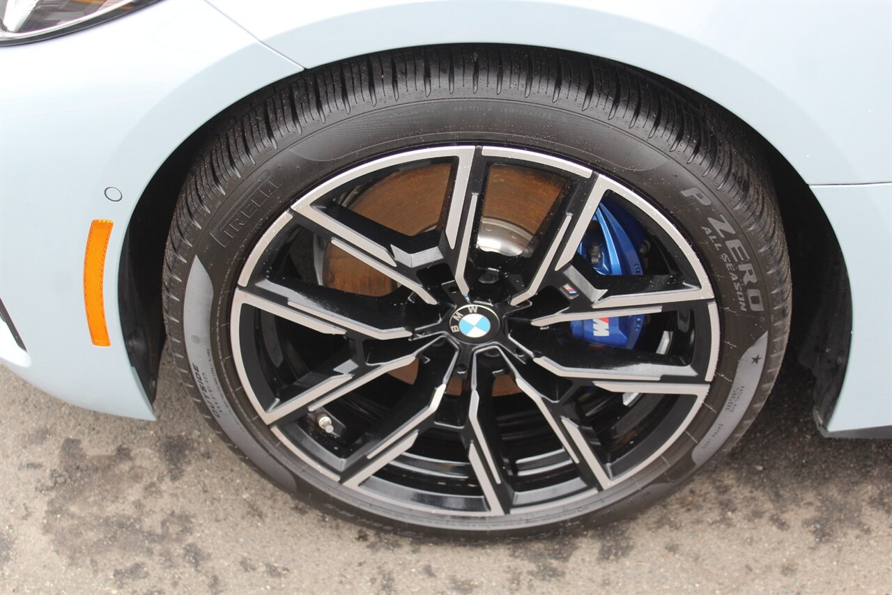 - M Sport PackageIncludes 19 in. M alloy wheels, M Sport brakes with blue calipers, M Sport styling, aerodynamic kit, black mirror caps, shadowline exterior trim, aluminum rhombicle anthracite trim or M fine brushed aluminum trim or fineline light open-pore fine wood trim or ash grey blue open-pored wood trim, and M steering wheel.